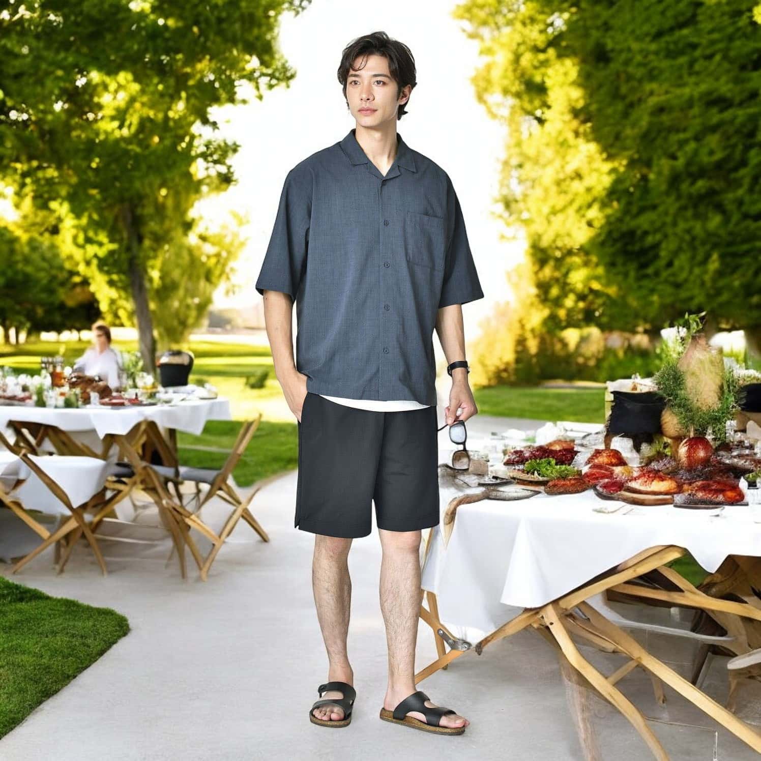 涼しげなハーフパンツで思いっ切りBBQを楽しんで!ブルー系のシャツを合わせれば爽やかな印象に。