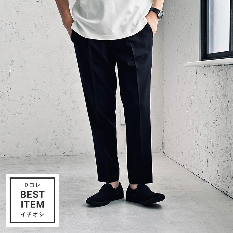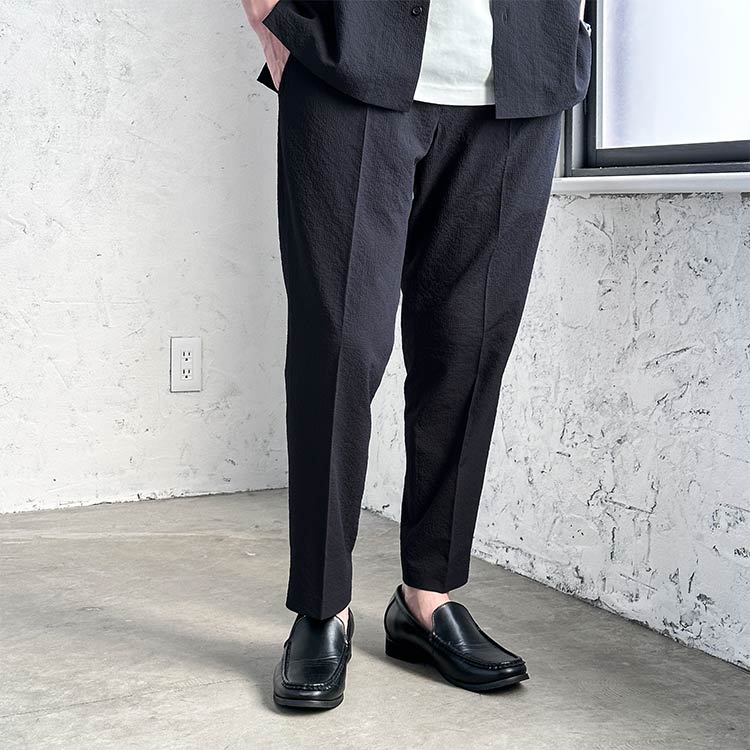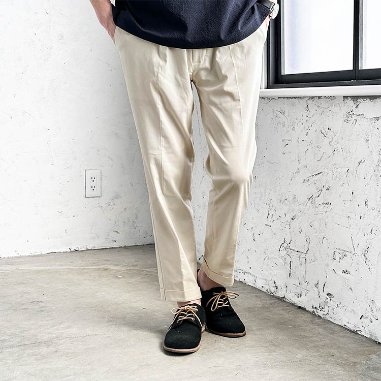 夏専用につくられた裾丈の短いパンツを選ぶことでスッキリと軽快な足元に。