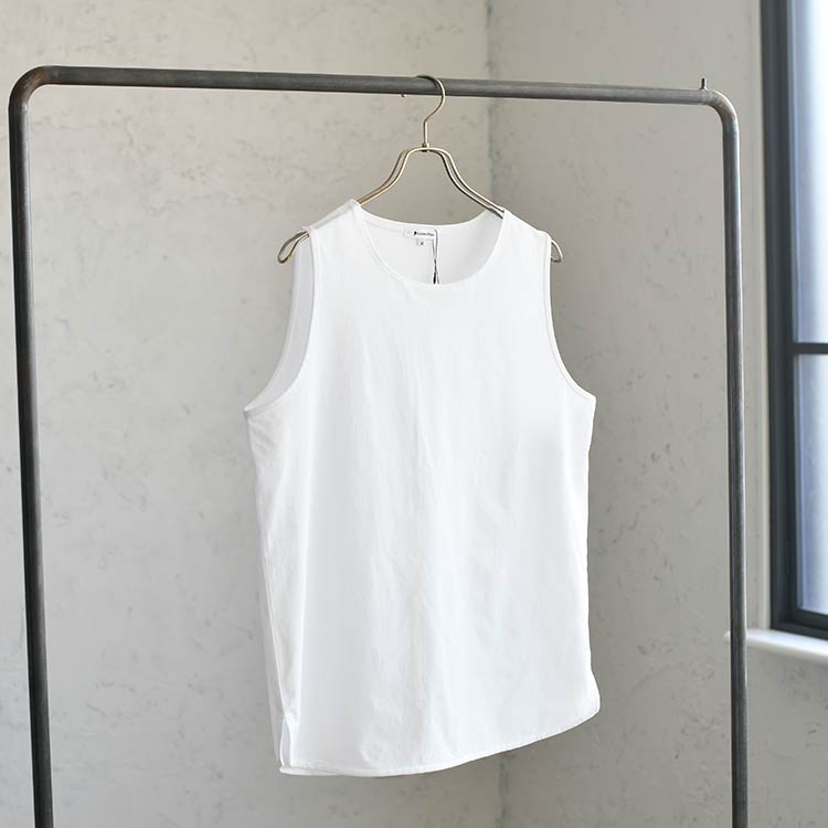 重ね着専用に開発された接触冷感タンクトップなら、のっぺりとしたコーデにメリハリが生まれるので、手抜き感のない着こなしが完成します。