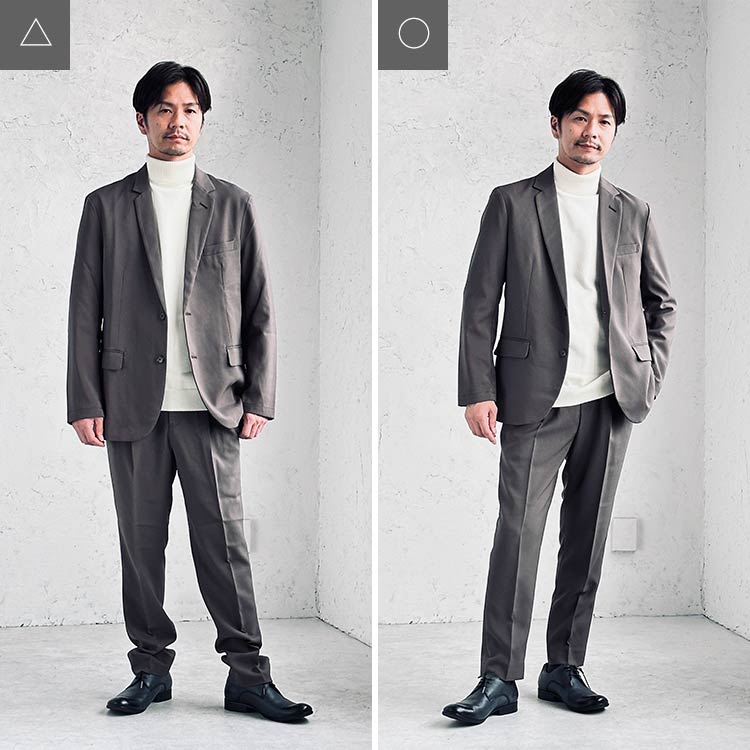 そうやってサイズ選びを見直してみる、着丈が長い場合はお直しに出すことで清潔感のある見た目をつくることができますよ。