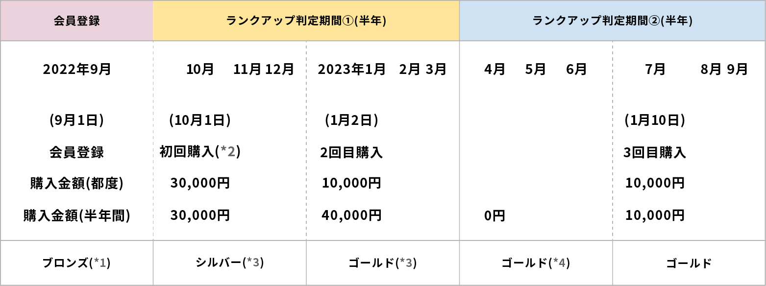 ※3 半年間の累計購入金額で会員ランクが決定いたします。
