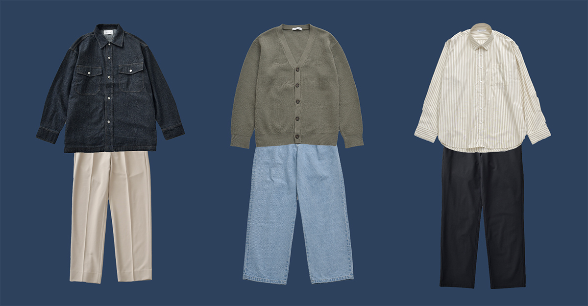 シンプルさをベースにしつつ、今っぽさを取り入れた着こなしをご提案。 トレンド感のあるシルエットと色合わせで、垢抜けた印象に。