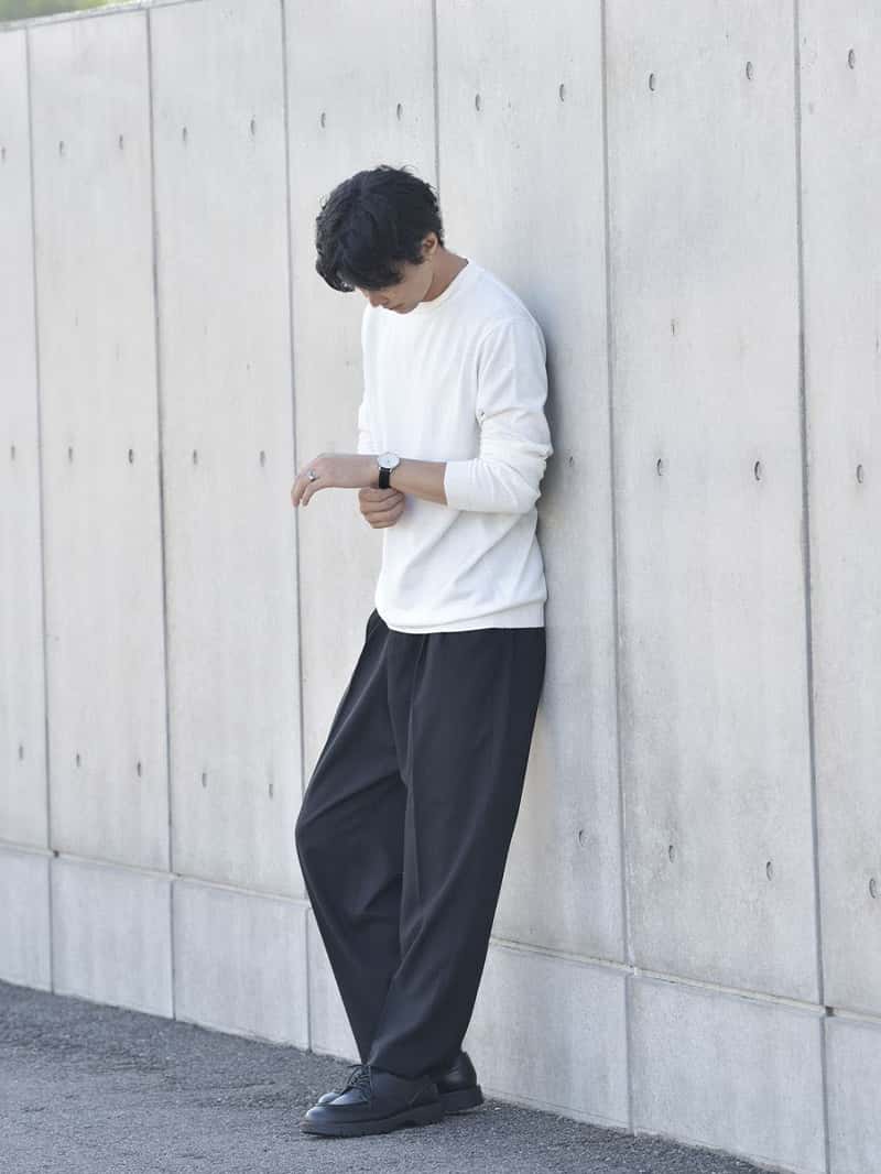黒のワイドパンツ、黒のテーパードスラックス、スリムニットの3つがあればトレンド感のあるカジュアルコーディネート、ON”のシーンにピッタリなキレイめコーディネートが作れます。 LIQUIDニット SILK タイトシルエットなこちらのニットはワイドパンツと合わせればAライン、テーパードスラックスと合わせればIラインが完成します。 CODEワイドスラックス ワイドシルエットはAラインが完成します。 CODE3 テーパードスラックス スリムなシルエットはIラインが完成します。 01 ワイドパンツはまず黒から挑戦するのがおすすめです。 白のニットを合わせた無彩色のみの色合わせは、どんな色のアウターを合わせても無彩色+1色の色合わせになるベースコーデです。 黒のボトムに黒の革靴を合わせることで脚が長く見える効果があります。 使用アイテム 大人デニムシャツジャケット LIQUIDニット SILK CODEワイドスラックス コートスプリットレザーUチップシューズ 02 ワントーンの色合わせは腰と脚の境目が分からなくなるので脚が長く見えます。 どんな色のアウターを合わせても無彩色+1色の色合わせになるベースコーデです。 タックインをしたXラインにもオススメのコーディネートです。 使用アイテム LIQUIDニット SILK CODEワイドスラックス 03 無彩色+1色の色合わせ。 色が黒になりがちという方は有彩色を1色取り入れるところから始めてみてください。 セットアップになる黒のカーディガンを合わせれば簡単にオシャレに見せることができます。 使用アイテム CODEテーラードカーディガン2ボタン LIQUIDニット SILK CODEワイドスラックス コートスプリットレザーUチップシューズ 04 Iラインで無彩色の色合わせ。 どんな色のアウターを合わせても無彩色+1色の色合わせになるベースコーデです。 アウターにカジュアルなデニムジャケットを合わせればキレイめカジュアルの完成です。 使用アイテム 大人デニムシャツジャケット LIQUIDニット SILK CODE3 テーパードスラックス 05 Iラインでワントーンの色合わせ。 先ほどと同じく、どんな色のアウターを合わせても無彩色+1色の色合わせになるベースコーデです。 ロングコートを合わせると大人っぽいYラインシルエットが構築できます。 使用アイテム 裏地付き 大人ツイルチェスター LIQUIDニット SILK CODE3 テーパードスラックス 06 Iラインで無彩色+1色の色合わせ。 テーラードジャケットを合わせればビジネスカジュアルにも対応できます。 ニットは女性からの印象も良く、お出かけやディナーデートにもおすすめのコーディネートです。 使用アイテム CODE3 テーラードジャケット LIQUIDニット SILK CODE3 テーパードスラックス 最新アイテムランキング ※ランキングはウィークリーで売れているものTOP5を表示しています。 5位以下も見てみる AUEN[オーエン] AUENは仕事もプライベートも忙しい30〜40代男性向けファッションブランド。 会員数は37万人を突破し、AUENアプリは累計50万DL(2025年9月時点)を達成しました。 独自サービス 「AI似合う服診断®」 は4万人以上が体験。 顔写真を撮影するだけで、顔の特徴から似合う服の方向性を診断し、毎日の服選びをスマートにサポートします。 これからもAUENは、大人を魅力的にする商品とサービスを通じて、あなたの毎日をより豊かにしていきます。 詳しくはこちら メディアTOPへ戻る