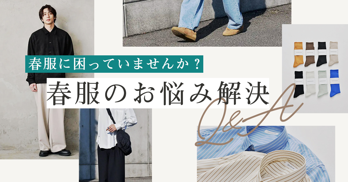 ファッションの悩みを解決する春の着こなし Q&A いま、春服で悩んでいることはありませんか? 気温の変化・季節感の取り入れ方など、春服で困っていることはいろいろあるはず。 そこで、特に多い5つのお悩みをピックアップ! それぞれのお悩みの解決策をご提案します。 春服のお悩みリストをチェック 春色の取り入れ方 失敗しない重ね着コーデ 気温に適した着こなし術 春のアウター選び 春服の買い替えタイミング お悩み01 Q.春らしい色を着たいけど、派手すぎるのは避けたい。どうすれば自然に取り入れられる? A.ベージュやサックスブルーをトップスや小物に取り入れましょう! 派手さを抑えるなら、ジャケットやパンツは落ち着いた色にして、 トップスや靴などの足元で春色を取り入れるのが正解。淡い色なら馴染みやすいですよ! 色だけでなく、柄も取り入れるなら、ストライプが今季のトレンドです。 春色コーディネート例 春色を取り入れたコーディネートをご紹介 春色アイテム 春色アイテムを取り入れて華やかな着こなしを 春ニットアッシュブルー アイテムをみる テーパードパンツアーシーベージュ アイテムをみる ストライプシャツブルー アイテムをみる 靴下 アイテムをみる 春のトレンドカラー トレンドを取り入れたいオシャレメンズのために、春のトレンドカラーをご紹介 お悩み02 Q.オシャレな重ね着(レイヤード)、どうやるのが正解? A.異素材の組み合わせ+トーンを揃えるのがポイント! シャツ×ニットや、ロンT×ジャケットのように 異素材を組み合わせると、大人っぽくまとまります! また、色のトーンを揃えると、より洗練された印象になりますよ。 レイヤードの基本ルール 素材感でメリハリを出す アイテム同士の色を変える レイヤードの長さは2〜3センチ レイヤードのコーディネート例 失敗しない着こなし方を4つご紹介 Tシャツ×カーディガン パーカー×シャツ パーカー×Tシャツ シャツ×Tシャツ お悩み03 Q.朝は寒く、昼は暑い…春の気温差に振り回されます A.軽いアウター+温度調整しやすい服装が便利! ステンカラーコートやブルゾンを羽織り、 脱ぎ着しやすいシャツやロンTをインナーに取り入れましょう。 朝晩の寒暖差はカーディガンをバッグに忍ばせるのもアリ。 その場合は、シワにならない素材が特におすすめです! 気温別コーディネート 最高気温に合わせた着こなしポイントをご提案 最高気温10℃コーデ point トップス1枚では、まだまだ寒いので、アウターや重ね着を取り入れましょう。 最高気温15℃コーデ point 最高/最低気温の差が激しい気温なので、カーディガンやライトアウターで寒暖差対策を。 最高気温20℃コーデ point アウターなしでもOK!トップスやボトムスに明るめカラーを取り入れましょう。 温度調整しやすいアイテムリスト 季節の変わり目に活躍してくれるアイテムたちをご紹介 サッと羽織りたいときにおすすめ ステンカラーコート アイテムをみる カーディガン アイテムをみる 重ね着用のインナーにおすすめ Tシャツ アイテムをみる シャツ アイテムをみる お悩み04 Q.春アウター、何を選べば正解? A.キレイめならステンカラーコート、カジュアルならブルゾンを選びましょう! オン・オフ兼用ならステンカラーコート、 休日メインならシャツジャケットやスエードブルゾンが◎ どれもシンプルなデザイン・色を選ぶと長く使えますよ。 春アウターの種類 キレイめアウターならコレ テーラードジャケット アイテムをみる ステンカラーコート アイテムをみる カジュアルアウターならコレ マウンテンパーカー アイテムをみる シャツジャケット アイテムをみる お悩み05 Q.春服はいつ買えばいい? A.余裕を持って、2月後半~3月に準備しましょう! 暖かくなると人気アイテムは売り切れがち。 2月後半~3月のうちに春服を揃えておくと、 ベストなタイミングで春服を購入できますよ! 【季節別】買い替えタイミング どのタイミングで服を買うのがベストなのかをまとめました 春(3月~5月) 買い替えタイミング:2月下旬~3月上旬 春服を片付け、春服を準備する時期 3月上旬には気温が安定していないため、軽めのアウターやインナーを買い足すと便利。 2月後半から春の新作を販売し始めるブランドが多い 夏(6月~8月) 買い替えタイミング:5月中旬~6月上旬 気温が上がり、薄手の服や半袖シャツ、ショートパンツが必要になる時期。 梅雨の時期を考慮し、撥水性のあるアイテムも検討すると◎ 秋(9月~11月) 買い替えタイミング:8月下旬~9月上旬 夏から秋への移行時期。軽いジャケットや長袖シャツを準備する。 8月下旬から秋の新作が出始めるので、早めにチェックすると選択肢が広い。 10月には冬を見越して少し厚手のアウターを用意するとスムーズ。 冬(12月~2月) 買い替えタイミング:10月中旬~11月上旬 気温が急に下がる前に、コートや厚手のニットを準備するのがベスト 11月下旬~12月上旬には冬物が充実しているが、年明けのセール(1月)を狙うのもアリ 【ニーズ別】買い替えタイミング 