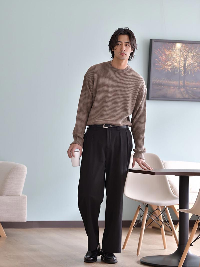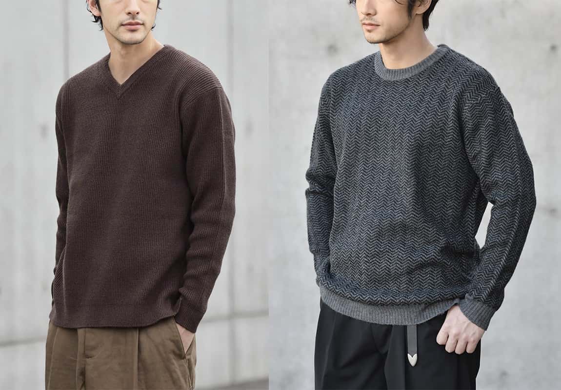 ニットの魅力を最大限に 寒さが増す季節に「ただ暖かい」だけでは満足できない方へ。自分らしさを感じられる、上質なニットコレクションをお届けします。 シンプルで美しい編み模様や、肌に馴染む柔らかな素材が特長の一枚一枚が、冬のスタイルにふさわしい上品さと心地よさを与えます。 心からくつろげる温かさを感じながら、着こなしに品格を添えるニットをぜひお試しください。 AZE編みVネックニット アイテムをみる シンプルでありながら計算されたAZE編みが特徴のVネックニット。 カジュアルにもビジネスカジュアルにも合わせやすく、コーディネートの幅が広がります。 適度な厚みで重ね着にもぴったり。Vネックが顔周りをすっきり見せ、大人の品格を引き出す一着です。 使用アイテム CODE WINTER ワイドパンツ スウェードレザースニーカー レタードツイルキャップ CABLE編みニット アイテムをみる クラシックなケーブル編みが温かみを感じさせるクルーネックニット。 ほどよいボリューム感と立体感があるデザインで、シンプルながらも存在感が際立ちます。 どんなボトムスにも合わせやすく、デイリー使いに最適な万能アイテムです。 使用アイテム CODE WINTER ワイドパンツ ナローリアルレザーベルト HARUSAKU 奈良産 無地リブ ARAN編みウールニット アイテムをみる トラディショナルなアラン編みが目を引くクルーネックニット。 独特の編み模様が施されたデザインで、カジュアルシーンを格上げするアイテムです。 温かさと同時に、程よいゆとりのシルエットで着心地も快適。さまざまなスタイリングに活用できる一着です。 使用アイテム コートスプリットレザーUチップシューズ Salvatole Marra クロノグラフ腕時計 HERRINGBONEニット アイテムをみる 洗練されたヘリンボーン編みが印象的なクルーネックニット。 上品で落ち着きのあるデザインは、オフィスから週末のカジュアルまで幅広いシーンで活躍します。 シルエットが美しく、スマートな着こなしが叶う一枚。程よい厚みと柔らかさが特徴で、重ね着にもおすすめです。 使用アイテム デニムシャツジャケット コートレザーコンビネーションスニーカー