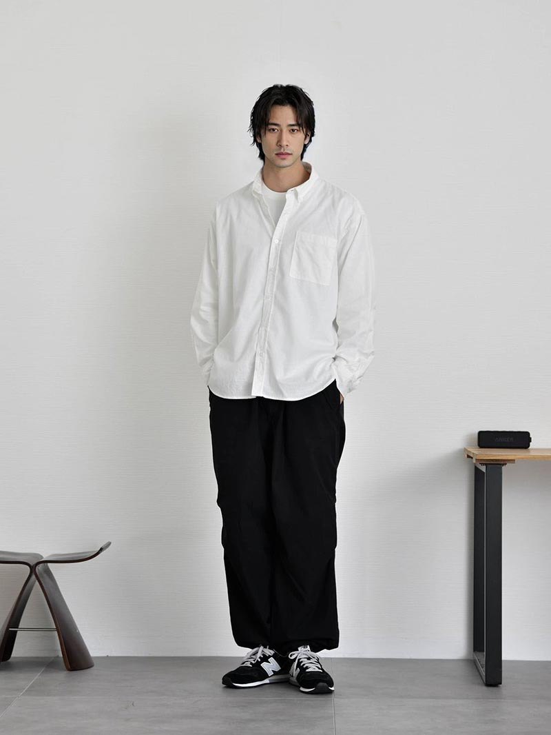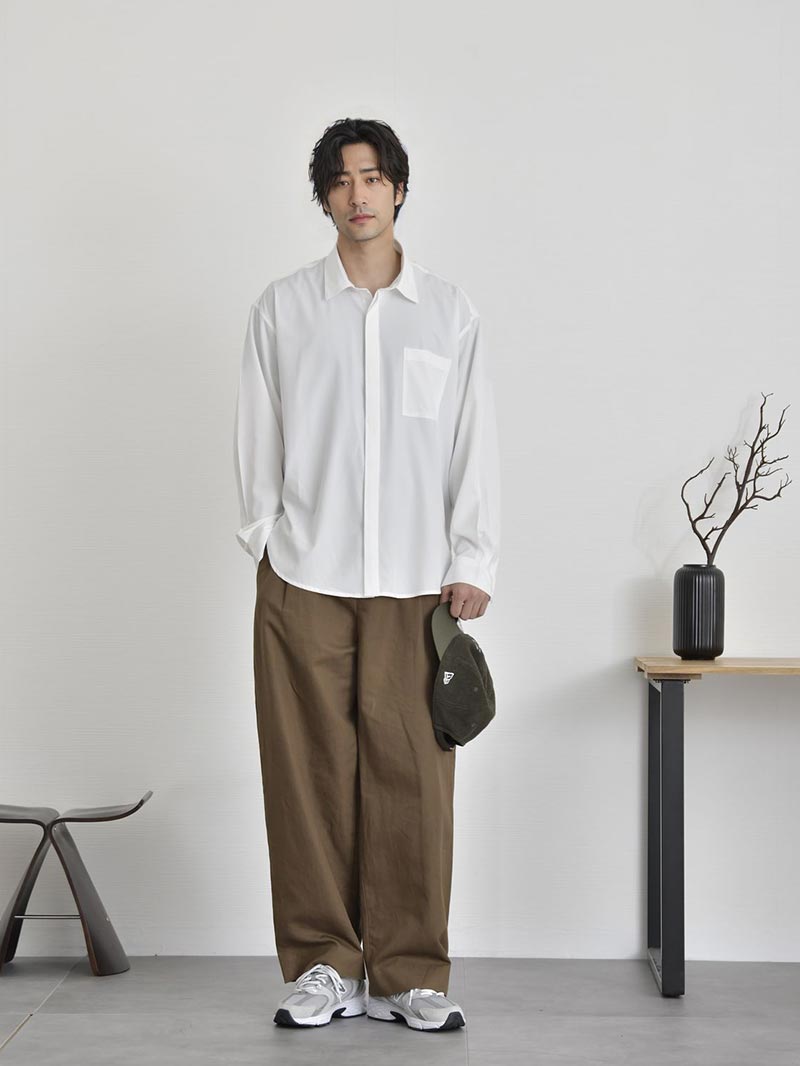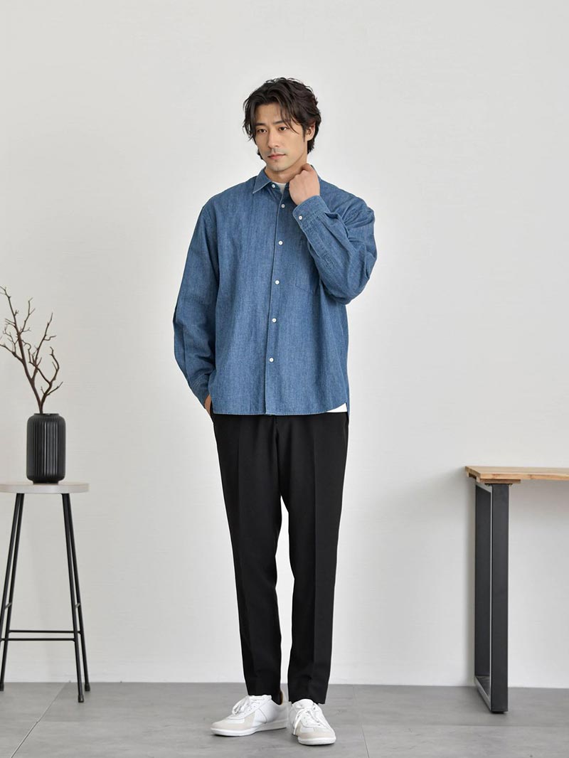 25SSのテーマは「都会的な大人カジュアル」 都会の風景を、自分らしさと洗練を兼ね備えたスタイルで颯爽と歩く。纏うのは、上質でありながらも肩肘張らない、自由と余裕を感じさせる「大人カジュアル」例えば、デザイン性のあるシャツにトレンド感のあるパンツ。足元にはカジュアルな革靴を合わせる。 カフェで過ごすブレイクタイムや、ショッピング。どんなシーンでも馴染むスタイルは、大人の余裕と遊び心を表現しています。春らしさ取り入れたカラーコーディネートや、トレンドを意識したアイテムで、「都会的な大人カジュアル」を完成させます。 タイプライターシャツ リラックスシルエットで、イージーケアを形にしたのがタイプライターシャツです。落ち感のあるリラックスシルエットが出したくて生地にはこだわりました。滑らかで上品で触ると気持ちが良い生地です。ビッグシルエットとは違う独自のアプローチで肩周りや身幅をデザインし、リラックス感のあるシルエットを実現。見た目は比翼のドレスシャツでありながら、スーツケースやバッグにパッキングしてもシワになりにくく、オフィスウェアや旅行に最適です。 ¥ 5,990 more 洗いざらしドレスシャツ 「洗いざらしで着るドレスシャツ」がコンセプトです。アメリカンテイストのヴィンテージシャツをベースにし、光沢のある滑らかなオックスフォード生地を採用することで、ドレスなボタンダウンシャツに仕上げました。やや小振りに設定した襟も上品さをプラス。ぜひ洗いざらしでお楽しみください。 ¥ 5,990 more リラックスシルエットストライプシャツ 無地になりがちな方にも試してほしい、優しいカラーのマルチストライプシャツです。1枚サッと羽織るだけでコーディネートがサマになるようにリラックスシルエットになっています。Tシャツの上からボタンを開けて着るも良し、ボタンを閉めてキレイめに着るも良し。アイロン不要のイージーケアで使い勝手の良いシャツです。 ¥ 5,990 more ルーズシルエットデニムシャツ 絶妙なインディゴの濃さとトレンド感を絶妙に取り入れたデザインで、オンオフ兼用で使える万能アイテムです。リネン混のデニム素材を使用することで、通気性が良く、夏でも快適に過ごせる上に、冬には空気を含み暖かく着用できます。 ¥ 5,990 more バンブーバンドカラーシャツ キレイめになりすぎず、カジュアルなアイテムともマッチするバンブーバンドカラーシャツ。商品名のバンブーとは「竹」を意味し、竹由来の繊維を使用した特殊なオリジナル生地を使用。ハリと光沢がありながらもゆったりとしたシルエットなので、キレイ目にもカジュアルにも合わせることができます。竹が持つ消臭効果も魅力の一つです。 ¥ 5,990 more ルーズテーラードジャケット モードな印象に仕上がるテーラードジャケット。ボックスシルエットと深めの打ち合いで生み出すルーズな印象が、リラックス感と洗練された雰囲気を両立。同素材のワイドパンツと合わせれば、セットアップスタイルとしても活躍します。洗濯機で簡単に洗えるウォッシャブル素材を採用。お手入れも手軽でワードローブにオススメの1着です。 ¥ 8,990 more ルーズワイドパンツ ワイドすぎないストレートシルエットで上品に仕上げる、大人の男性に最適なワイドパンツ。ゆとりを感じさせつつもスッキリとした見た目が魅力の一つ。またセンタープレスがキレイめさをプラスし、幅広いシーンで活躍します。「ワイドパンツは若者がはくもの」と思っていた大人にこそ穿いて欲しいワイドパンツです。 ¥ 6,490 more