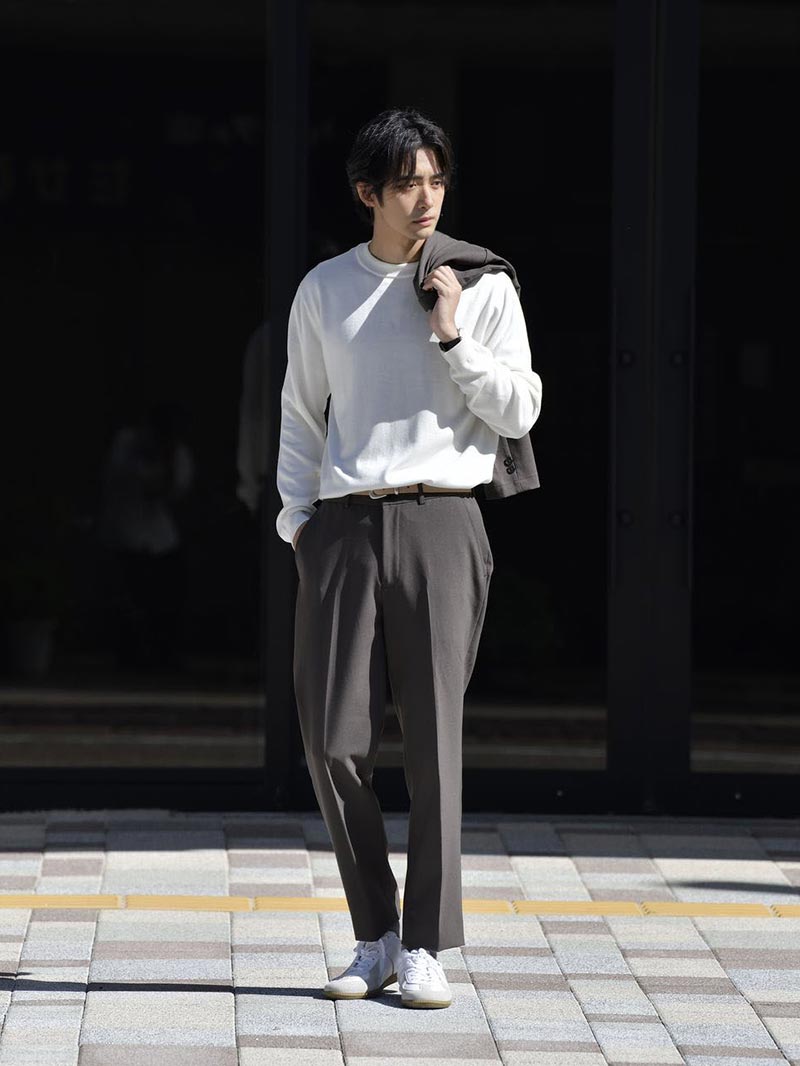 キレイめからカジュアルまで使えるCODEテーパードパンツを使ったスタイリングの実例を季節に合わせて更新しています。 × ブラックでまとめた都会的な冬のセットアップコーデ。素材感にこだわった組み合わせが、上品さと落ち着きを両立します。 CODE WINTER テーラードジャケット ¥8,990 LIQUIDニット SILK ¥5,990 CODE WINTER ワイドパンツ ¥6,990 コートスプリットレザーUチップシューズ ¥7,990 × 冬のオフィスカジュアルに最適なキレイめスタイル。モノトーンアイテムでまとめつつ、ホワイトニットとホワイトのシューズで清潔感をプラス。 CODE WINTER テーラードジャケット ¥8,990 LIQUIDニット SILK ¥5,990 CODE WINTER テーパードパンツ ¥6,990 × 柔らかなグレーと清潔感のあるホワイトで魅せる冬コーデ。ジャケットとワイドパンツの組み合わせが大人の余裕を漂わせます。 CODE WINTER テーラードジャケット ¥8,990 LIQUIDニット SILK ¥5,990 CODE WINTER ワイドパンツ ¥6,990 × シックなセットアップスタイル。ブラックのニットが全体を引き締め、グレーのジャケットとパンツで落ち着きと上品さを演出。 CODE WINTER テーラードジャケット ¥8,990 LIQUIDニット SILK ¥5,990 CODE WINTER テーパードパンツ ¥6,990 コートスプリットレザーUチップシューズ ¥7,990 × テクニカルなマウンテンパーカーにコーヒーカラーのタートルニットを合わせ、秋冬らしい暖かみを演出。ワイドパンツとスニーカーで軽快な動きやすさもあり、街歩きに最適なスタイリングに。 テクニカルマウンテンパーカー ¥8,990 LIQUID ニット WINTER TURTLE ¥4,990 CODE WINTER ワイドパンツ ¥6,990 × ブラックとグレーのモノトーンコーデに、アッシュ×ベージュのマフラーでアクセントをプラス。マフラーが季節感と品格を加え、レザーシューズが全体の完成度を高めてくれます。 LIQUIDニット SILK ¥5,990 CODE WINTER ワイドパンツ ¥6,990 コートスプリットレザーUチップシューズ ¥7,990 リバーシブルマフラー ¥3,490 × ミッドナイトブルーとブラックのクールな配色コーデ。腕時計のホワイトカラーがさりげなく存在感を放ち、スタイリッシュな仕上がりに。 LIQUID ニット WINTER TURTLE ¥4,990 CODE WINTER テーパードパンツ ¥6,990 Salvatole Marra クロノグラフ腕時計 ¥14,990 × テーラードカーディガンがスマートさを際立たせるコーデ。ブラックニットとグレーパンツで、季節感と落ち着きを感じさせる着こなしに。 WIS テーラードカーディガン 2 ¥6,990 LIQUIDニット SILK ¥5,990 CODE WINTER テーパードパンツ ¥6,990 × 明るめのアイボリーニットとブラックアイテムの対比が際立つスタイリング。スウェードスニーカーが程よい抜け感をプラスします。 LIQUID ニット WINTER TURTLE ¥4,990 CODE WINTER ワイドパンツ ¥6,990 スウェードレザースニーカー ¥7,990 × グレーのセットアップコーデにミッドナイトブルーのニットがアクセント。シンプルながらも都会的で上質な冬の装いを演出します。 CODE WINTER テーラードジャケット ¥8,990 LIQUID ニット WINTER TURTLE ¥4,990 CODE WINTER ワイドパンツ ¥6,990 × シックなブラックのセットアップに、テラコッタのニットで柔らかさと季節感をプラス。シンプルながらも深みのあるキレイめコーデです。 CODE WINTER テーラードジャケット ¥8,990 LIQUID ニット WINTER ジャケニット ¥4,990 CODE WINTER ワイドパンツ ¥6,990 × グレー×アイボリーの配色が上品で清潔感を引き立てるコーぢねーと。ブラックのスウェードスニーカーがアクセントとなり、都会的な雰囲気を演出します。 CODE WINTER テーラードジャケット ¥8,990 LIQUID ニット WINTER ジャケニット ¥4,990 CODE WINTER ワイドパンツ ¥6,490 スウェードレザースニーカー ¥7,990 × ジャケットとスラックスのブラウンで統一感を出し、ホワイトニットが上品さを際立たせるバランスの良いスタイリング。洗練された大人オフィカジスタイルにも最適。 CODE2テーラードジャケット ¥4,990 LIQUIDニット SILK ¥5,990 CODE2テーパードスラックス ¥3,990 × ブラックのアイテムでまとめた大人のキレイめスタイル。スラックスで上品さをキープしつつ、キャップで抜け感を演出した都会的なスタイリング。 LIQUIDニット SILK ¥5,990 CODE3 テーパードスラックス ¥5,990 レタードツイルキャップ ¥1,500 変わらない良さ・ずっとカッコいいとされているスタイルを追求し、現代的に落とし込んだ名品を集めました。 最新アイテムランキング ※ランキングはウィークリーで売れているものTOP5を表示しています。 5位以下も見てみる AUEN[オーエン] AUENは仕事もプライベートも忙しい30〜40代男性向けファッションブランド。 会員数は37万人を突破し、AUENアプリは累計50万DL(2025年9月時点)を達成しました。 独自サービス 「AI似合う服診断®」 は4万人以上が体験。 顔写真を撮影するだけで、顔の特徴から似合う服の方向性を診断し、毎日の服選びをスマートにサポートします。 これからもAUENは、大人を魅力的にする商品とサービスを通じて、あなたの毎日をより豊かにしていきます。 詳しくはこちら メディアTOPへ戻る