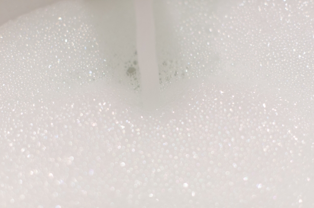 給湯口からゆるやかにお湯が出るタイプのバスルームの場合は、シャワーを勢いよく当てることでよく泡立ちます。