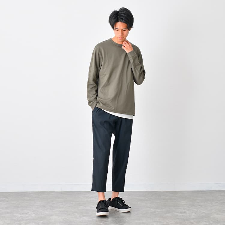 フルレングスのパンツよりも抜け感が出て、さまざまなスタイルに使える「クロップドパンツ」。 多数の魅力があるため、普段のコーデに取り入れたいと思っている方は多いのではないでしょうか? しかし、クロップドパンツとはどのようなアイテムなのか、あまり分かっていない方もいると思います。 そこで今回は、クロップドパンツの魅力や選び方、おすすめのメンズコーデなどを解説します。 さまざまなスタイルに取り入れて、外出を楽しみましょう。 INDEX1 【AUEN厳選】これからの季節、コレさえ手に入れておけば間違いない!2 【AI似合う服診断】をしてみませんか?3 オシャレに見える!クロップドパンツのコーデ5選4 【最新】売り切れる前にゲットしてほしい人気アイテムランキング5 クロップドパンツとは6 クロップドパンツの魅力7 失敗しないクロップドパンツの選び方8 クロップドパンツを上手に着こなすコツ9 クロップドパンツに合うおすすめのメンズアイテム10 【Q&A】に関するよくある質問にスタイリストがお答え!11 クロップドパンツを軽快に履きこなしてオシャレを楽しもう 【AUEN厳選】これからの季節、コレさえ手に入れておけば間違いない! AUEN [オーエン]は、服の購入だけではなく、着こなしのヒントやオシャレの基本を学べる”大人のための”メンズブランド。 そんな私たちが今おすすめするのが、「CODEテーパード ウィンター」です。 なぜおすすめなのか、主な理由は3つ。 【おすすめしたい3つのポイント】 仕事から休日までこれ1本で着まわせる 裏起毛で暖かいのに、ストレッチが効いて冬も動きやすい どんなトップスやアウターにもマッチする一本 今の時期に、シンプルでも“ちゃんと見え”する1枚になっています! 【スタイリスト厳選】毎日穿きたい"万能パンツ" イチオシアイテム CODEテーパード ウィンター 詳しくみる 【スタイリスト厳選】万能パンツに合うおすすめアイテム 冬コーデがスッキリきまる ウールメルトンチェスター 詳しくみる 着心地バツグンの冬のメインニット コットンカシミヤニット 詳しくみる 暖かく着回せる大人の上品ニット タートルネックニット 詳しくみる 例えばテーパードパンツとチェスターコート、クルーネックニットを組み合わせることで、このように簡単にカッコいいコーディネートが完成します! 間違いないアイテムをそろえておくことでコーデのベースが整い、きっと今まで以上にオシャレを楽しむことができるはずです。 AUENスタイリスト 他にもどんな服が自分に似合うか知りたい人もご安心を。AUEN [オーエン] アプリの「AI似合う服診断」なら、たった1分で、自分に似合う服をAIが分析してくれます。 2万人以上が利用している無料診断ツール 【AI似合う服診断】をしてみませんか? 人の顔タイプは5つにわけることができ、各パターンごとに似合う服のテイストが異なります! 自分に似合う服を知ることで、よりオシャレに変わることができるんですよ。 あなたがどのパターンか、簡単に診断してみませんか? 診断はこちら オシャレに見える!クロップドパンツのコーデ5選 それでは早速、クロップドパンツを使った真似しやすいおすすめのコーデを5つご紹介します。 アイテム選びやコーデを組む際の参考にしてください。 白シャツと合わせてとことん爽やかに 白シャツとクロップドパンツを組み合わせた、爽やかなコーデです。 無地の白シャツを選ぶことで、知的なコーデが完成します。きちんと感を演出したい場合は、ボタンをすべて閉めて着こなしましょう。 足元には、ボリュームの少ないスニーカーを合わせています。足首を出すことで、ほどよく抜け感を出せますよ。 着用アイテム レギュラーカラーシャツ クロップドパンツ シンプルスニーカー トートバッグ マウンテンパーカーと合わせたカジュアルスタイル ブラウン系のマウンテンパーカーに、グレー系のクロップドパンツを合わせたコーデです。 キレイめなクロップドパンツに、マウンテンパーカーを組み合わせることで、カジュアルダウンできます。 トップスは白色をチョイスして、明るさを出しましょう。 足元には、マウンテンパーカーと同系色のスニーカーをもってくるのがおすすめです。 着用アイテム マウンテンパーカー アイスTシャツ クロップドパンツ シンプルスニーカー シンプルなコーデにはオシャレな小物をプラス 白色のカットソーとクロップドパンツを組み合わせた、ベーシックなコーデです。 キレイめなシルエットのパンツにカットソーを合わせて、カジュアルに着こなしましょう。 シンプルなコーデをオシャレに見せるポイントは、小物づかいです。 肩掛けバッグを身に付けて、メリハリをつけることが大切です。 通学からちょっとした買い物、友だちとのお出かけなど、幅広いシーンに対応できます。 着用アイテム 長袖Tシャツ クロップドパンツ ボディーバッグ シンプルスニーカー 腕時計 落ち着いた色味で大人っぽくまとめたスタイル アッシュカーキのト