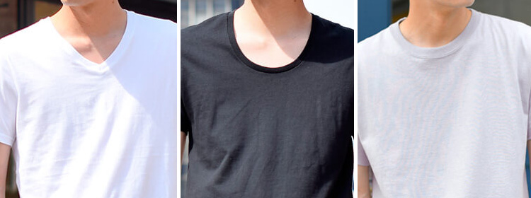 上の画像は、左から「Vネック」「Uネック」「クルーネック」。