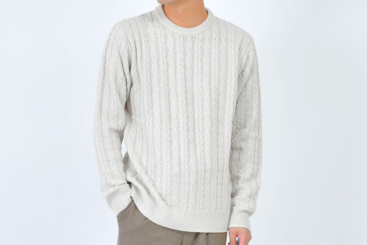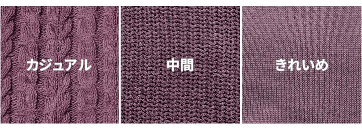 寒くなってきて、暖かいニットが手放せない季節になってきましたね。 ニットは、種類やデザインがたくさんあります。皆さんは、着る季節や自分に合ったニットを着れていますか? 自分の好きなニットを着るのもいいけれど、「季節」や「自分に似合っているか」を意識することで、よりオシャレに見せることができるようになります。 このブログを読めば、ニットの知識や種類を正しく理解できるようになり、どんなニットを選べばいいのか分かるようになりますよ! INDEX1 【AUEN厳選】これからの季節、コレさえ手に入れておけば間違いない!2 【AI似合う服診断】をしてみませんか?3 ”ニット”ってどんなアイテム?4 ニットの編み方の種類とは?5 ニットのネックラインでも印象が変わる6 AUEN(旧:DCOLLECTION)おすすめ!メンズコーデを上品に仕上げるニット6種類7 ニットの素材について8 季節にあった素材・編み方のニットを選ぶ9 【最新】売り切れる前にゲットしてほしい人気アイテムランキング10 【Q&A】ニットの種類に関するよくある質問にスタイリストがお答え!11 自分に合ったニットの種類を知って、オシャレなコーデを試してみよう。 【AUEN厳選】これからの季節、コレさえ手に入れておけば間違いない! AUEN [オーエン]は、服の購入だけではなく、着こなしのヒントやオシャレの基本を学べる”大人のための”メンズブランド。 そんな私たちが今おすすめするのが、「CODEテーパード ウィンター」です。 なぜおすすめなのか、主な理由は3つ。 【おすすめしたい3つのポイント】 仕事から休日までこれ1本で着まわせる 裏起毛で暖かいのに、ストレッチが効いて冬も動きやすい どんなトップスやアウターにもマッチする一本 今の時期に、シンプルでも“ちゃんと見え”する1枚になっています! 【スタイリスト厳選】毎日穿きたい"万能パンツ" イチオシアイテム CODEテーパード ウィンター 詳しくみる 【スタイリスト厳選】万能パンツに合うおすすめアイテム 冬コーデがスッキリきまる ウールメルトンチェスター 詳しくみる 期間限定で1,000円OFF ニット×シャツ2点セット 詳しくみる 着心地バツグンの上品ニット カシミヤ混タートルニット 詳しくみる 間違いないアイテムをそろえておくことでコーデのベースが整い、きっと今まで以上にオシャレを楽しむことができるはずです。 AUENスタイリスト 他にもどんな服が自分に似合うか知りたい人もご安心を。AUEN [オーエン] アプリの「AI似合う服診断」なら、たった1分で、自分に似合う服をAIが分析してくれます。 2万人以上が利用している無料診断ツール 【AI似合う服診断】をしてみませんか? 人の顔タイプは5つにわけることができ、各パターンごとに似合う服のテイストが異なります! 自分に似合う服を知ることで、よりオシャレに変わることができるんですよ。 あなたがどのパターンか、簡単に診断してみませんか? 診断はこちら ”ニット”ってどんなアイテム? みなさんは、ニットというと何を思い浮かべますか? 多くの方が、こちらのようなトップスを思い浮かべると思います。 実は、ニットとはこのようなアイテムの名前を指すのでは無く、編み物の総称のことを言います。 私たちが普段、頭から被って着ているトップスのことを『ニット』と呼ぶわけです。 これもニット?意外と知らないニットの事 まとめると、『ニット』とは編み物のことで、『ニット』とはアイテム名称だという事です。 そして、私たちが何気なく着ているTシャツも、実は編み物(ニット)のひとつになります。 しかし、『ニット』という名前ではなく、『Tシャツ』といった別の呼び方で呼ばれています。 ニットの特性 ソフトな感触がある 伸縮性がある しわになりにくい 保温性がよく、同時に通気性もある 着脱がしやすく、着ていて疲れない 洋服屋でニットを探すときには、ニットありますか?と言うと、『ニットカーディガンですか?着るニットですか?』という質問が返ってくることもあります。 頭から被るプルオーバー状のトップスは『ニット』と呼ぶのが一般的です。 しかし、ニットでも分かってもらえるかと思いますのでご安心ください。 目次へ戻る 「大人っぽくて、カッコいい」 人気ランキングTOP10 カテゴリ別ランキングはコチラ AUENスタイリスト 好印象になれるポイントは、大人っぽくて、清潔感のある服装を心がけること! AUEN [オーエン] のアイテムを着こなすことで、すぐに好印象になれちゃいます! ニットの編み方の種類とは? ニットセーター、ニットカーディガン、ニット帽、ニットパンツ。ニットには様々なアイテムがありますよね。 そしてニットの編み方により、着た時の印象がガラッと変わります。 そこでここからは、ローゲージ・ミドルゲージ・ハイゲージの3つの編み方について解説していきます。 メンズが知っておきたい!ローゲージ・ミドルゲージ・ハイゲージ ニットは編み物。編み目を大きく編んだり、小さくすることもできます。 編み目を大きく3種類に分けると、