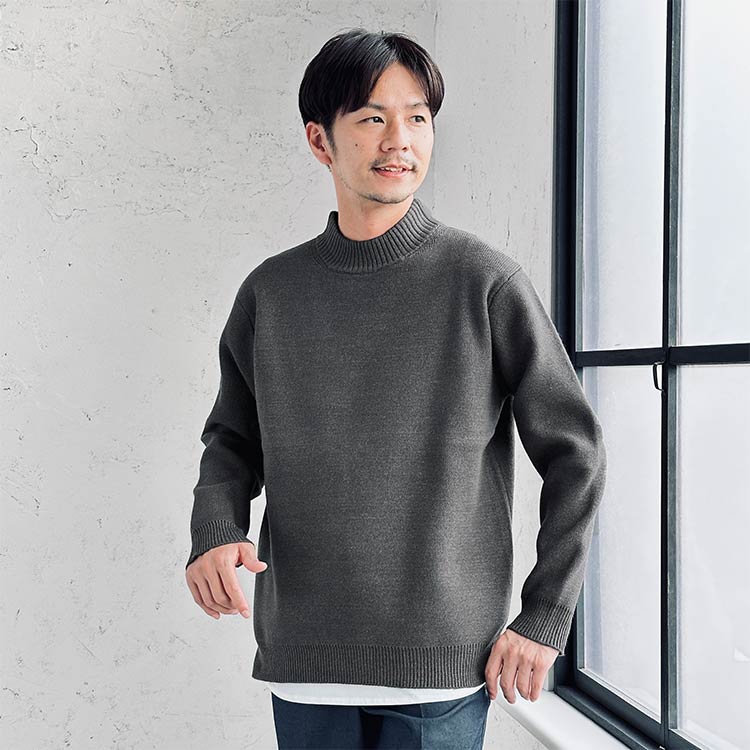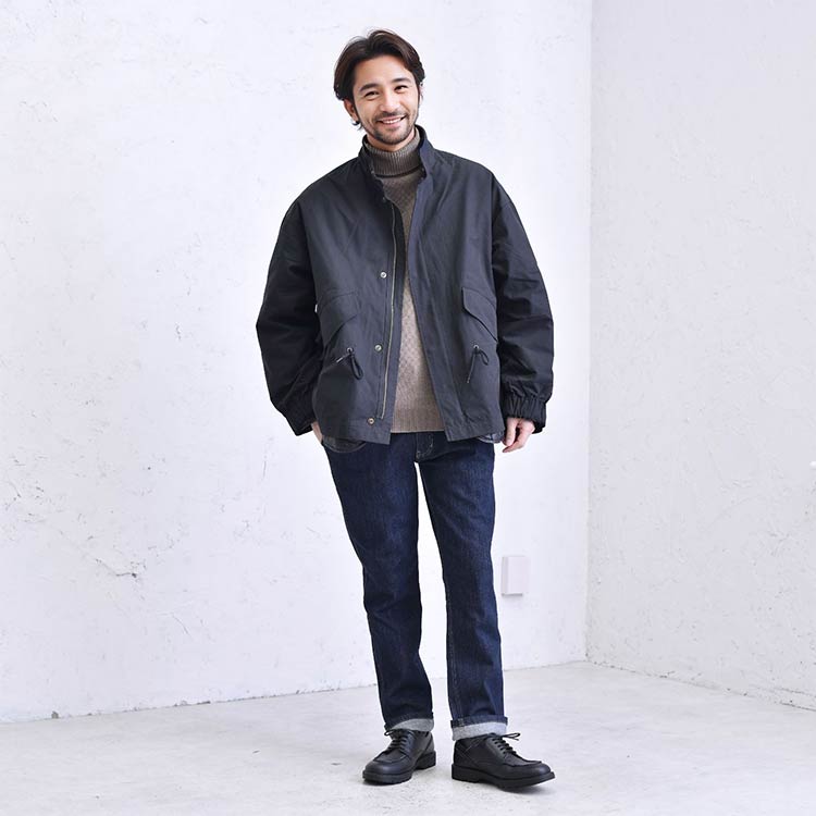 トレンドを意識した短めの着丈で、身幅がゆったりとしているため重ね着してもゴワつきにくいのが魅力です。