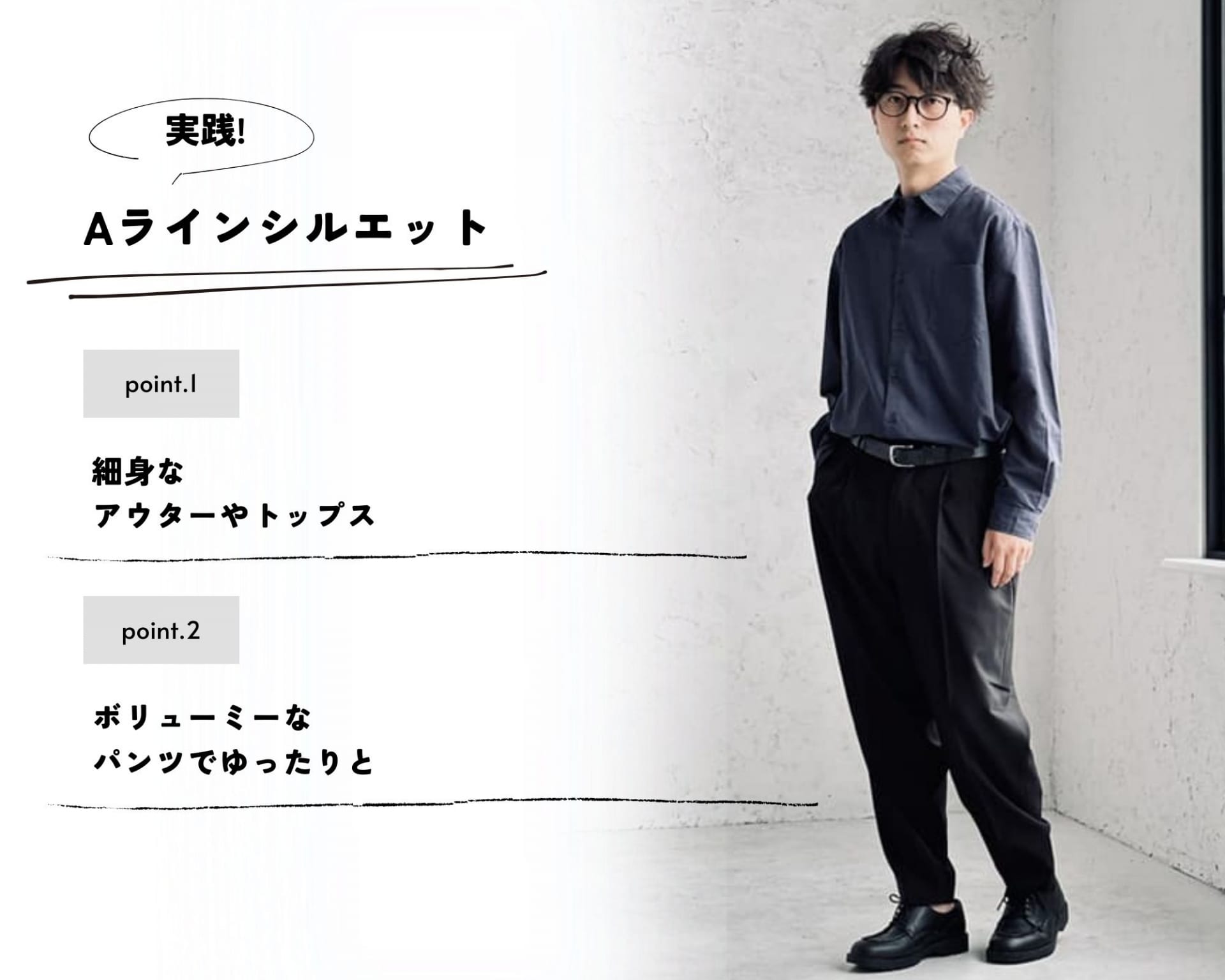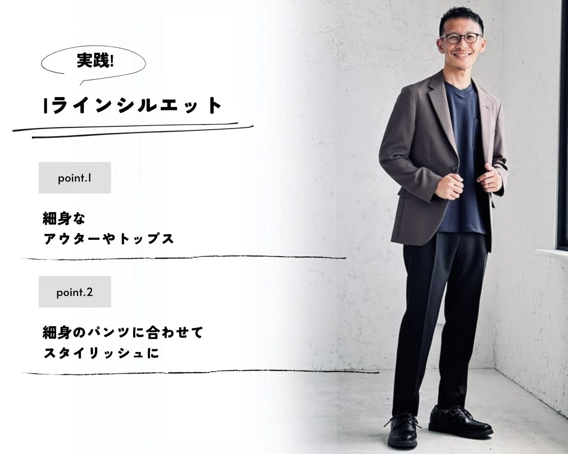 簡単に清潔感のある印象になるので、一番初めはIラインシルエットに挑戦しましょう。
