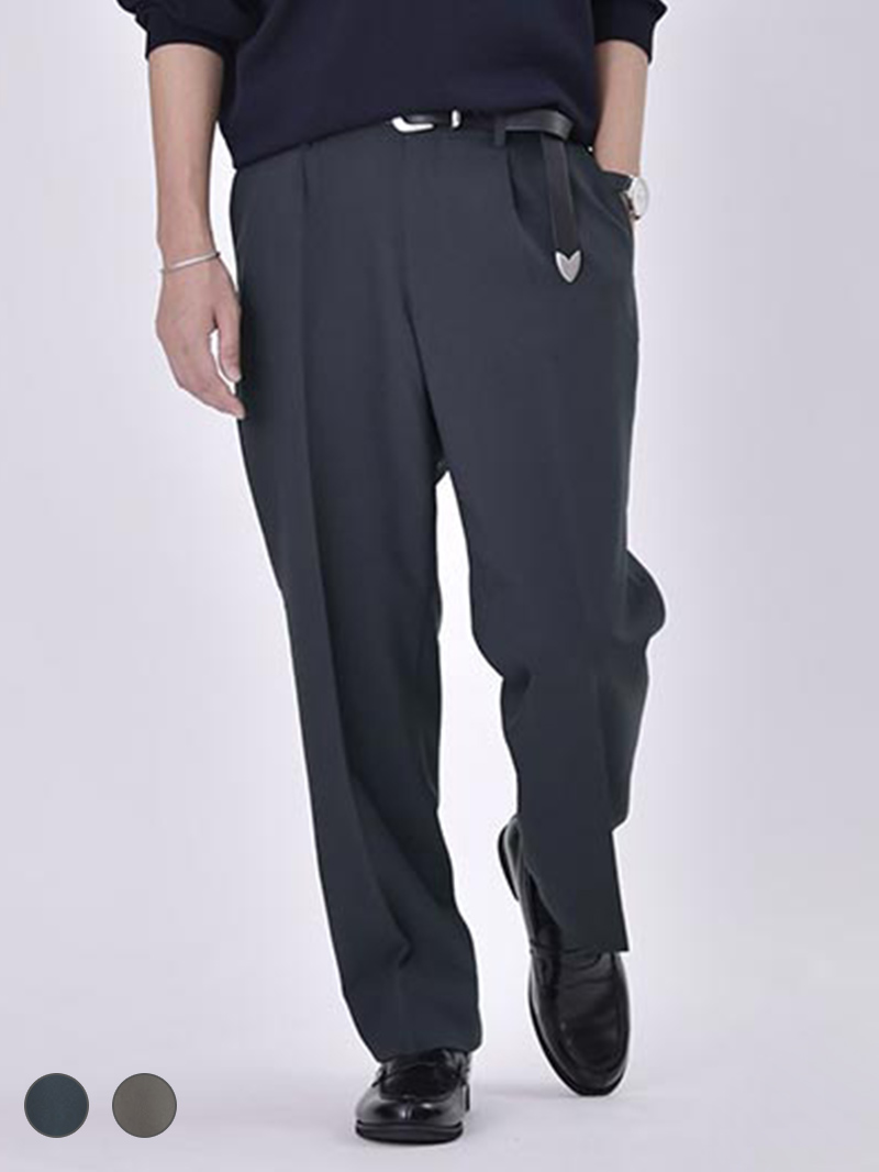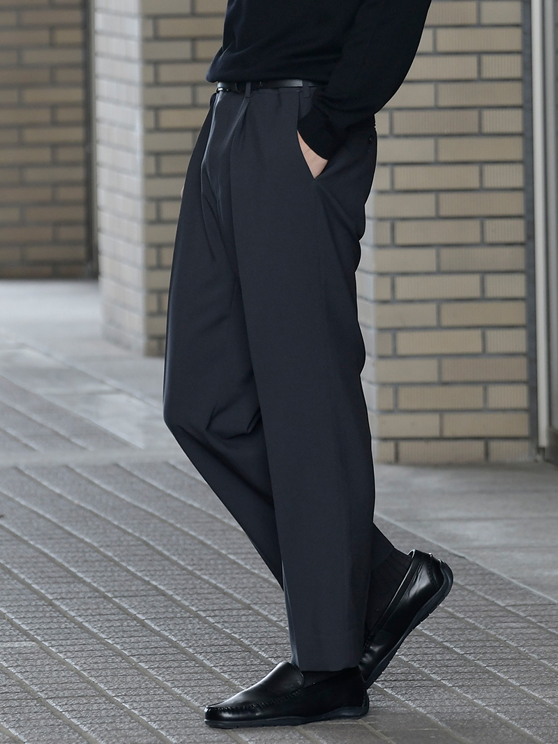 パンツにはセミワイドデザインのタイプを選び、さりげなく抜け感をプラスしましょう。