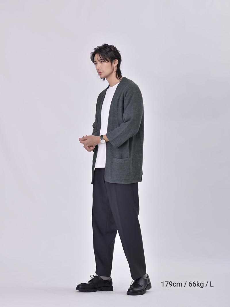 「きちんと感」のあるステンカラー付きでロング丈のため、大人の男性らしい落ち着きと高級感があります。