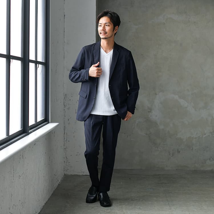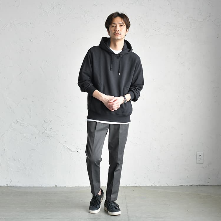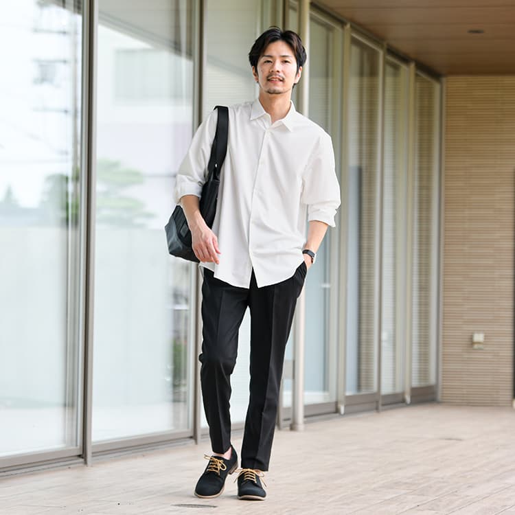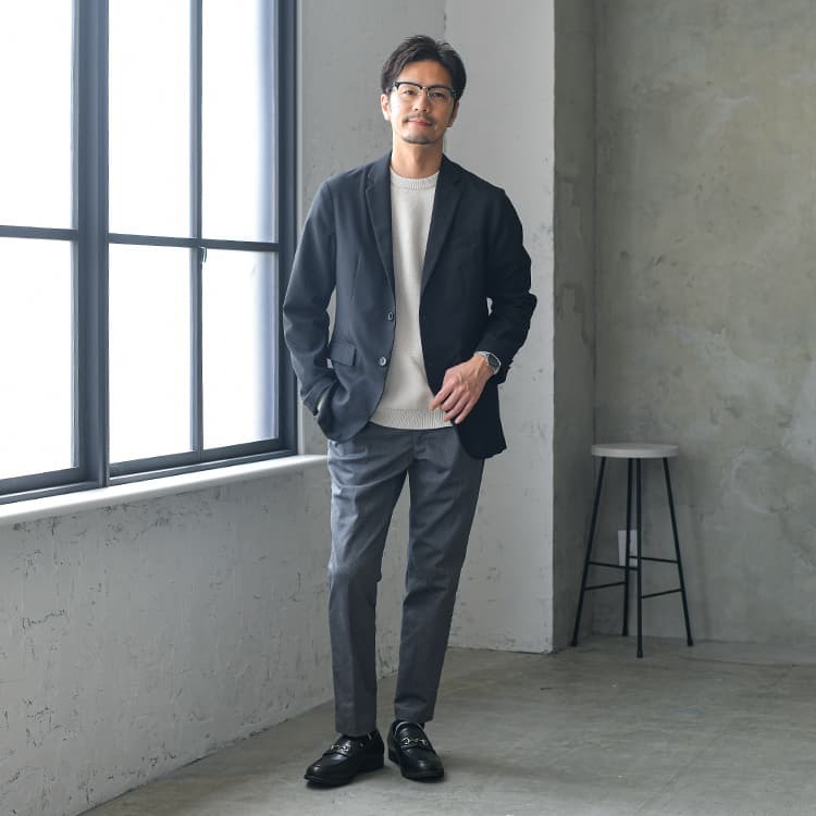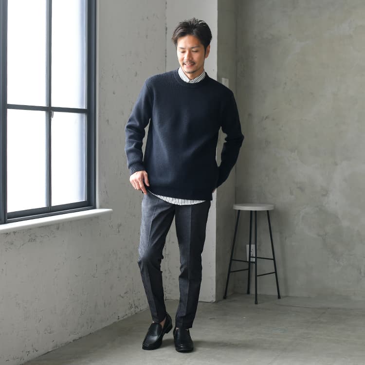 スタイリッシュにもカジュアルにも着こなせる「スラックス」。 落ち着きのあるコーデに取り入れやすく、スマートな印象を与えてくれるので、40代メンズにぴったりのアイテムです。 また厚さや素材もさまざまな種類があるため、季節を問わず身につけられるのもポイント。40代なら、一本は持っておきたいボトムスと言えます。 そんな人気のスラックスをコーデに取り入れるなら、どんなポイントを踏まえておくべきなのか、気になりますよね! 今回は、スラックスでオシャレの幅が広がるコーデ術と着こなしポイントをご紹介します。 INDEX1 40代メンズ向け!おすすめスラックスコーデ3選2 スラックスを使った40代メンズのベストな着こなし方とは?3 40代メンズが着こなす!オシャレなスラックスコーデ9選4 40代メンズにぴったり!AUEN(旧:Dコレ)のおすすめスラックスをチェック5 40代こそ、スラックスをスマートに着こなさそう! 40代メンズ向け!おすすめスラックスコーデ3選 「ゆるい」という意味を持つ「スラック(Slack)」が語源と言われているスラックス。 まずは、スラックスを使った40代にぴったりのコーデ術から見ていきましょう。 シンプルシャツでオフィカジスタイルに テーパードスタイルのスラックスは、柔らかな動きが出しやすいアイテム。 シンプルな白シャツは、大人っぽさをアップしてくれるので、40代が取り入れやすいコーデがキマリます。 清潔感も感じさせるので、春先や秋口など季節の変わり目に身につけたくなるスタイルです。 レギュラーカラーシャツ トートバッグ テーパードパンツ キャンバスシューズ インナーのストライプシャツをオシャレにチラ見せ 落ち着きカラーでまとめたスタイルにストライプシャツのチラ見せで、大人の遊び心を加えたスタイル。 足元には素材が楽しめるスリッポンを取り入れることで、年相応な雰囲気をアップしてくれます。 オフィスコーデにも取り入れやすいスタイルですね。 ストライプシャツ リブニット セーター ツイルテーパードパンツ 落ち着きパーカーでキレイ×カジュアルな上品スタイル パーカーを組み合わせたコーデは、大人っぽさの中にチャーミングな雰囲気が加わった絶妙なスタイルです。 縦にスーッと伸びるラインが入ることでパーカーのカジュアルさを抑えるので、40代がシンプルにキマるコーデと言えますね! スウェット プルパーカー オックスフォードシャツ テーパードパンツ スラックスを使った40代メンズのベストな着こなし方とは? 汎用性が高いスラックスをコーデに取り入れる場合、どんな着こなし方をすればいいのか、イマイチわからない方も少なくないですよね。 ここからは、スラックスを40代らしく着こなすためのポイントをチェックしていきましょう。 シルエット スラックスで40代らしいオシャレなコーデをつくるには、シルエットを整えることがポイント。 キレイめでシュッとした印象を与えるスラックスは、「Iライン」「Yライン」を意識することで、余裕のあるスマートな大人を演出することができます。 タイトすぎず、程よいゆるさのあるスラックスを取り入れると、トレンド感もプラスできるので、無理しすぎないオシャレが楽しめます。 「Iライン」「Yライン」を意識したコーデは、スタイルアップも叶うので、スタイリッシュに魅せたい方にもおすすめです。 キレイめとカジュアルのバランスをとる スラックスをオシャレに着こなすには、キレイめとカジュアルのアイテムのバランスを取るのも大切なポイント! スラックスは、スーツスタイルにも適しているキレイめアイテムなので、カジュアルなアイテムと組み合わせることで、程よい着崩しが叶います。 逆にキチンとしたキレイめなアイテムでまとめてしまうと、老け見えする可能性があるので要注意! 40代らしい大人っぽさを表現するなら、プライベート感のあるカジュアルなアイテムを取り入れるようにしましょう! 色合わせ 40代らしさを演出するなら、色合わせも重要! 特に大人な雰囲気を作るためには、落ち着いた色味のアイテムを意識することが大切です。さらに色の数にもこだわるようにしましょう。 「無彩色+有彩色2つまで」に色数を絞ることで、まとまりのあるコーデを作りやすくなるため、年相応なオシャレがわからないという方は、まず色数を絞るところから始めると良いでしょう。 またモノトーンで整えたり、アースカラーでまとめたりすると、大人っぽさがアップするので、同系色でまとめるのもおすすめです。 40代メンズが着こなす!オシャレなスラックスコーデ9選 スラックスの着こなし方をチェックしたところで、次は40代がスラックスをオシャレに着こなす、おすすめコーデをご紹介しましょう! 色使いやシルエットなどをチェックしながら、参考にしてみて下さいね。 ワンポイントカラーで秋冬の大人スタイル ブラックのセットアップにダークカラーのテラコッタトップスを組み合わせ、季節感を出したコーデ。 ジャケットが大人