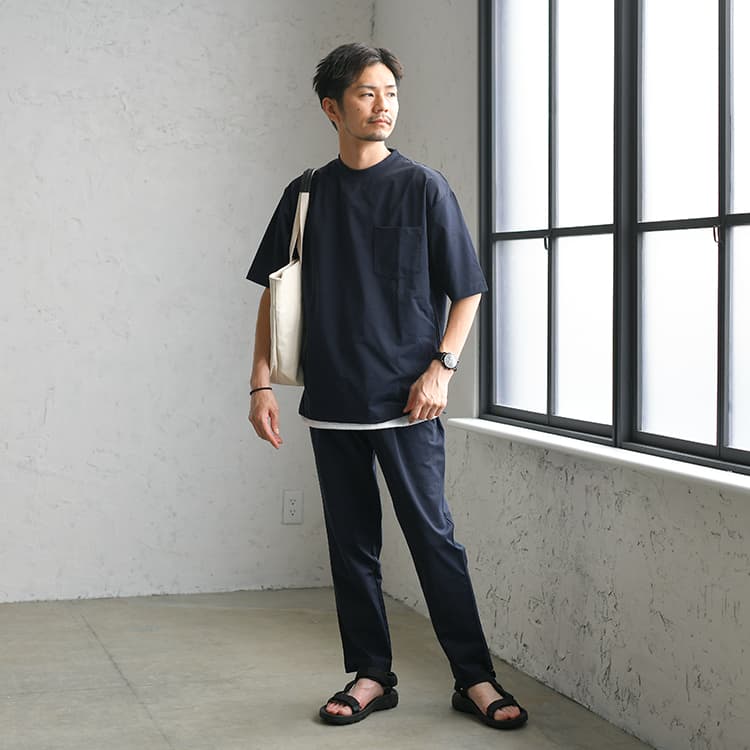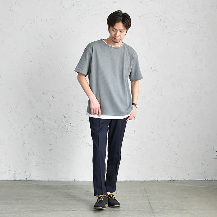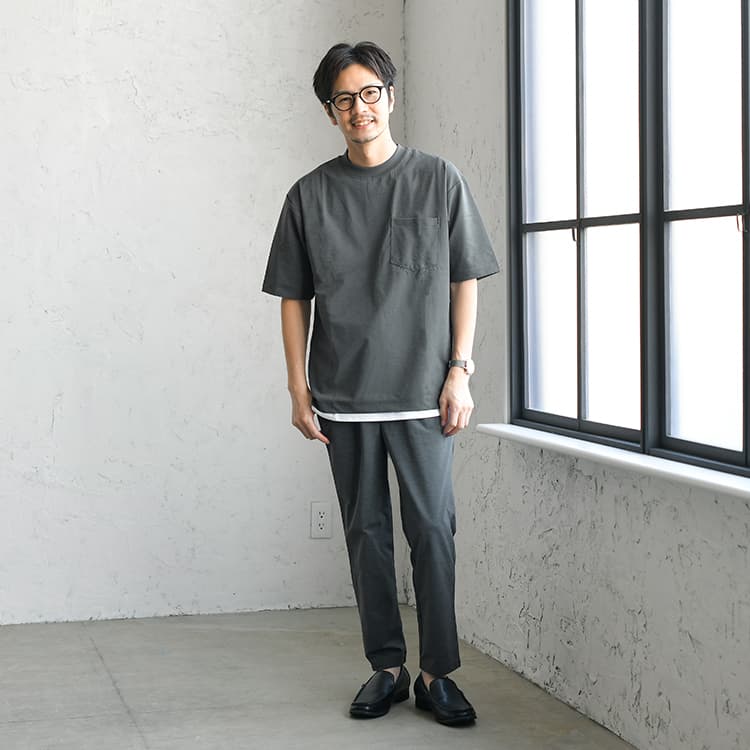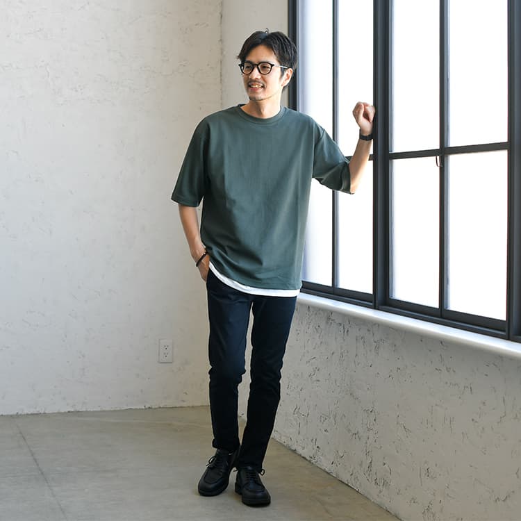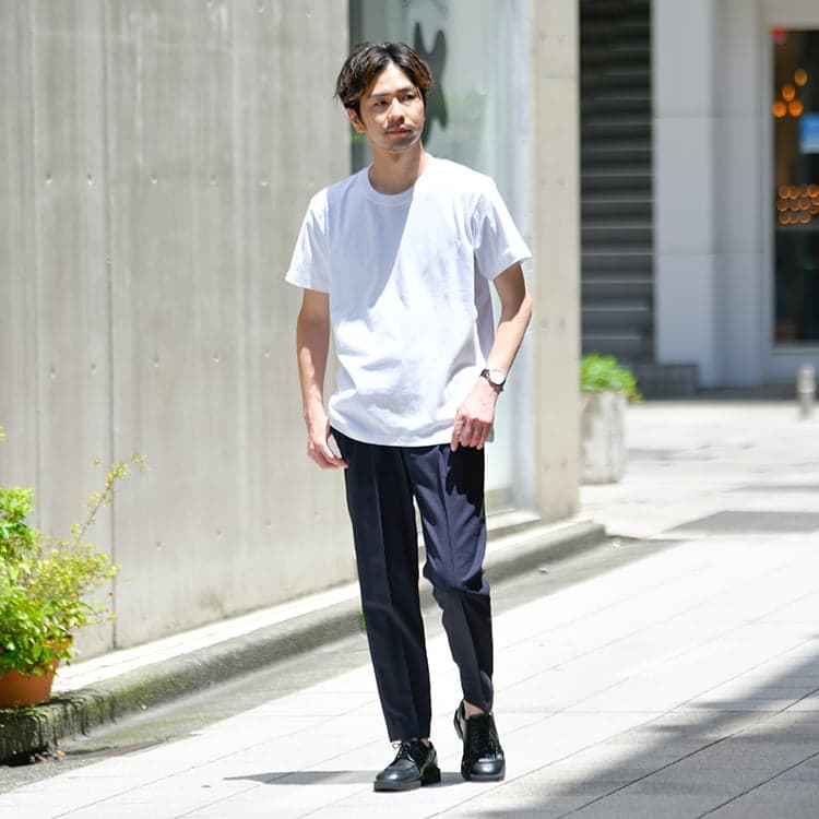 Tシャツはシンプルかつ活用しやすいアイテムで、普段から着ている方も多いのではないでしょうか。 しかし、40代にもなるとピッタリなTシャツコーデや、合わせるアイテムについて悩んでいる方も少なくはありません。 そこでここでは、40代メンズにおすすめなTシャツの着こなし方やコーデを紹介していきます。 普段からTシャツを着ていて、よりオシャレの幅を広げたい方はぜひ参考にしてみてください!では早速みていきましょう。 INDEX1 【AUEN厳選】これからの季節、コレさえ手に入れておけば間違いない!2 【AI似合う服診断】をしてみませんか?3 40代メンズにおすすめのTシャツコーデ5選4 40代メンズにおすすめなTシャツの着こなし方5 【色別】40代メンズにおすすめのTシャツコーデ6 今回コーデで紹介した40代におすすめのメンズTシャツ7 まとめ 【AUEN厳選】これからの季節、コレさえ手に入れておけば間違いない! AUEN [オーエン]は、服の購入だけではなく、着こなしのヒントやオシャレの基本を学べる”大人のための”メンズブランド。 そんな私たちが今おすすめするのが、「CODEテーパード ウィンター」です。 なぜおすすめなのか、主な理由は3つ。 【おすすめしたい3つのポイント】 仕事から休日までこれ1本で着まわせる 裏起毛で暖かいのに、ストレッチが効いて冬も動きやすい どんなトップスやアウターにもマッチする一本 今の時期に、シンプルでも“ちゃんと見え”する1枚になっています! 【スタイリスト厳選】毎日穿きたい"万能パンツ" イチオシアイテム CODEテーパード ウィンター 詳しくみる 【スタイリスト厳選】万能パンツに合うおすすめアイテム 冬コーデがスッキリきまる ウールメルトンチェスター 詳しくみる 期間限定で1,000円OFF ニット×シャツ2点セット 詳しくみる 着心地バツグンの上品ニット カシミヤ混タートルニット 詳しくみる 間違いないアイテムをそろえておくことでコーデのベースが整い、きっと今まで以上にオシャレを楽しむことができるはずです。 AUENスタイリスト 他にもどんな服が自分に似合うか知りたい人もご安心を。AUEN [オーエン] アプリの「AI似合う服診断」なら、たった1分で、自分に似合う服をAIが分析してくれます。 2万人以上が利用している無料診断ツール 【AI似合う服診断】をしてみませんか? 人の顔タイプは5つにわけることができ、各パターンごとに似合う服のテイストが異なります! 自分に似合う服を知ることで、よりオシャレに変わることができるんですよ。 あなたがどのパターンか、簡単に診断してみませんか? 診断はこちら 40代メンズにおすすめのTシャツコーデ5選 ここでは、40代メンズにおすすめのTシャツコーデを5つ紹介していきます。Tシャツコーデについて悩んでいる方はぜひ参考にしてみてください! キレイめカジュアルな黒Tシャツコーデ 黒Tシャツに白スニーカーといったシンプルなコーデ。 ここにテーパードパンツを合わせることで、キレイめのテイストが加わり、クールさを引き出してくれます。 無地Tシャツ ロング丈タンクトップ テーパードパンツ シンプルスニーカー 大人感溢れるセットアップ×Tシャツコーデ トレンドのセットアップスタイルを使用したコーデ。 Tシャツのようなカジュアルアイテムを取り入れることで、キメすぎ感が出ずにオシャレなコーデができます。 テーラードジャケット 無地Tシャツ ロング丈タンクトップ テーパードパンツ ローファー シックさと爽やかさを兼ね備えたTシャツコーデ ネイビーの開襟シャツとチャコールのテーパードパンツを合わせたコーデ。 ネイビーは知的で誠実さを、チャコールは上品な印象を与えてくれるのでおすすめです。 オープンカラーシャツ 無地Tシャツ イージーパンツ レザーUチップシューズ トートバッグ 抜け感のある白Tシャツコーデ 開襟シャツと白Tシャツを合わせたコーデ。 開放的な襟が特徴的な開襟シャツや、黒スキニーパンツをロールアップすることで、抜け感のあるスタイルに仕上がっています。 オープンカラーシャツ ロング丈タンクトップ 黒スキニーパンツ キャンバスシューズ トートバッグ ボーダーで変化をつけた大人コーデ サマージャケットとボーダーTシャツを組み合わせたコーデ。 ボーダーのような柄物を取り入れることで、シンプル過ぎない変化のあるコーデに仕上げてくれます。 サマージャケット ボーダーTシャツ テーパードパンツ シンプルスニーカー トートバッグ 40代メンズにおすすめなTシャツの着こなし方 カジュアルなTシャツを40代らしく着こなすには、ポイントがあります。 ここで紹介する着こなし方のポイントを参考に、自分に似合うコーデを探してみましょう! シルエットを意識する Tシャツを着こなす際には、細身×細身のIラインシルエットを意識しましょう! Iラインシルエットにすることで、よりコーデがまとまって見えます。 また、スマートでスタイリッシュな印象を与えることができ、40代らしい大人な雰囲気を演出できますよ! キレイめア