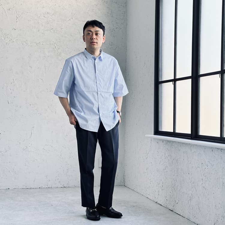 全体的にゆったりとしたシルエットに仕上げることで、気温25度の季節に欠かせない通気性をプラス。