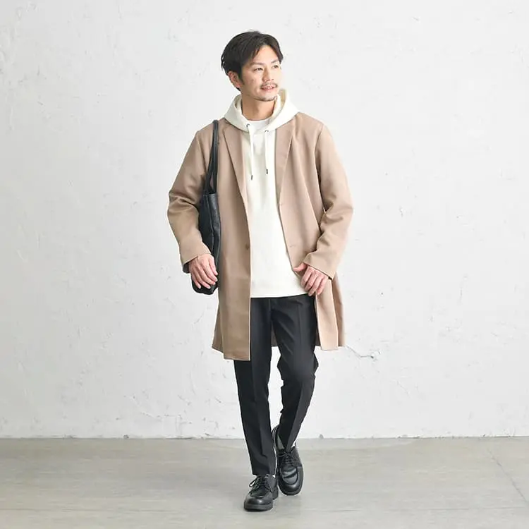 冬用コートでは暑いし、トップス1枚では肌寒いと感じる日が多い春は、「どんなコートを着れば良いのかわからない」という方も多いと思います。 そこでこの記事では、春におすすめのスプリングコートの選び方を紹介。 今回は、50代の方に向けて若々しく見えるスプリングコートの着こなし術も伝授しますので、ぜひ参考にしてみてください。 INDEX1 【AUEN厳選】これからの季節、コレさえ手に入れておけば間違いない!2 【AI似合う服診断】をしてみませんか?3 メンズスプリングコートとはどんなコート?4 スプリングコートと冬コートの違い5 50代メンズにおすすめのスプリングコートの選び方6 Dcollectionからはコチラ!50代にピッタリのメンズスプリングコート7 50代メンズスプリングコートとの相性抜群のアイテム8 スプリングコートを使った50代メンズコーデ例 【AUEN厳選】これからの季節、コレさえ手に入れておけば間違いない! AUEN [オーエン]は、服の購入だけではなく、着こなしのヒントやオシャレの基本を学べる”大人のための”メンズブランド。 そんな私たちが今おすすめするのが、「CODEテーパード ウィンター」です。 なぜおすすめなのか、主な理由は3つ。 【おすすめしたい3つのポイント】 仕事から休日までこれ1本で着まわせる 裏起毛で暖かいのに、ストレッチが効いて冬も動きやすい どんなトップスやアウターにもマッチする一本 今の時期に、シンプルでも“ちゃんと見え”する1枚になっています! 【スタイリスト厳選】毎日穿きたい"万能パンツ" イチオシアイテム CODEテーパード ウィンター 詳しくみる 【スタイリスト厳選】万能パンツに合うおすすめアイテム 冬コーデがスッキリきまる ウールメルトンチェスター 詳しくみる 着心地バツグンの冬のメインニット コットンカシミヤニット 詳しくみる 暖かく着回せる大人の上品ニット タートルネックニット 詳しくみる 例えばテーパードパンツとチェスターコート、クルーネックニットを組み合わせることで、このように簡単にカッコいいコーディネートが完成します! 間違いないアイテムをそろえておくことでコーデのベースが整い、きっと今まで以上にオシャレを楽しむことができるはずです。 AUENスタイリスト 他にもどんな服が自分に似合うか知りたい人もご安心を。AUEN [オーエン] アプリの「AI似合う服診断」なら、たった1分で、自分に似合う服をAIが分析してくれます。 2万人以上が利用している無料診断ツール 【AI似合う服診断】をしてみませんか? 人の顔タイプは5つにわけることができ、各パターンごとに似合う服のテイストが異なります! 自分に似合う服を知ることで、よりオシャレに変わることができるんですよ。 あなたがどのパターンか、簡単に診断してみませんか? 診断はこちら メンズスプリングコートとはどんなコート? スプリングコートとは、その名の通り春に着用するアウターのことです。 一般的には、ステンカラーコートやトレンチコートなどがスプリングコートに分類されます。 春にはもちろん大活躍のスプリングコートですが、生地感的には気候が似ている秋にも着用可能です。 スプリングコートと冬コートの違い スプリングコートは冬用コートのように厚手ではなく、薄い生地で作られています。 そのため防寒性は冬用コートより低いですが、春先の気温が上がってきた頃、トップスの上にサラッと羽織るのにちょうど良いです。 生地が薄手なので着ぶくれもしにくく、冬用コートに比べるとシルエットがスッキリとしていて、スマートに着こなしたい方にピッタリです。 50代メンズにおすすめのスプリングコートの選び方 ここからは、「スプリングコートを上手く着こなす自信がない」という50代男性の方のために、選び方のポイントを4つお伝えします。 メンズのスプリングコートをオシャレに着こなせれば、とてもスマートでクールな印象になれるでしょう。ぜひ参考にしてみてください。 春らしい素材で選ぶ スプリングコートは、春の季節にふさわしい軽やかな素材のものを選びましょう。 おすすめの素材は、コットンやポリエステル、リネンなどです。 冬用のコートのように分厚い素材ではなく、サラッとした肌触りや、柔らかい肌触りの素材のコートが春先にはピッタリです。 デザイン・カラーを重視 デザインは、自分のスタイルや体型、使用シーンなどに合わせてお好みのものを選びましょう。 例えば、長め丈のトレンチコートは体型をカバーできるシルエットのものが多く、羽織るだけでスマートな印象になります。 短め丈のブルゾンやミリタリージャケットなどは、カジュアルさが際立ち、若々しい印象を与えてくれるでしょう。 カラーは、ブラックやチャコールグレーなどのオーソドックスなものを選べば、春・秋ともに使いやすいでしょう。 「春らしい、明るいカラーが良い」という場合は、ベージュやカーキなどがおすすめです。 機能性で選ぶ 昼夜の寒暖差や春風など気候面が不安定な春。 また、