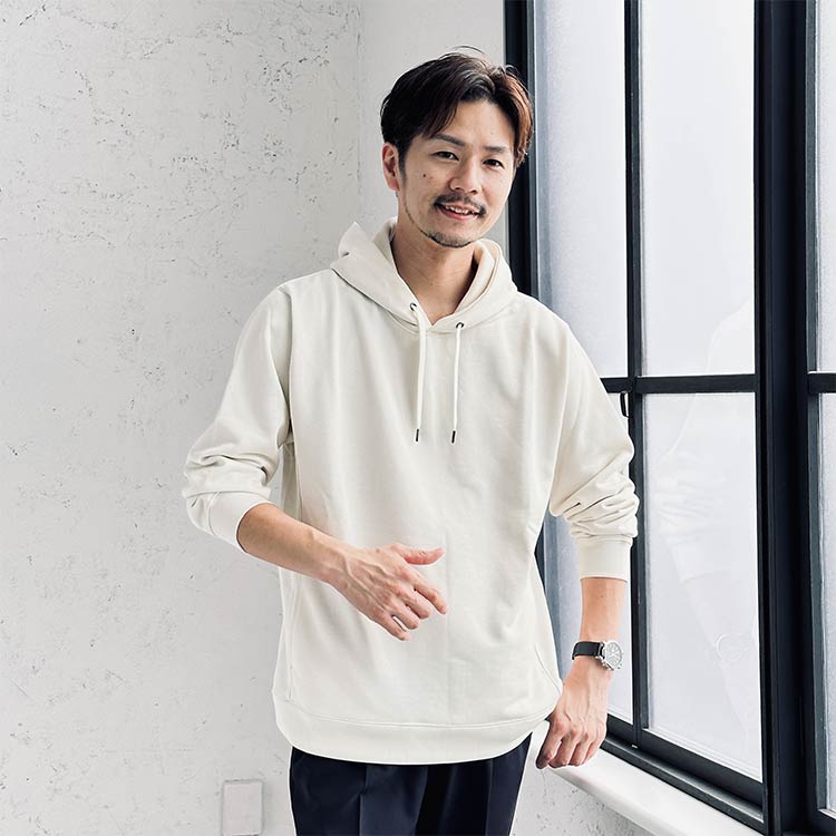 大人のスウェット キレイめプルパーカー