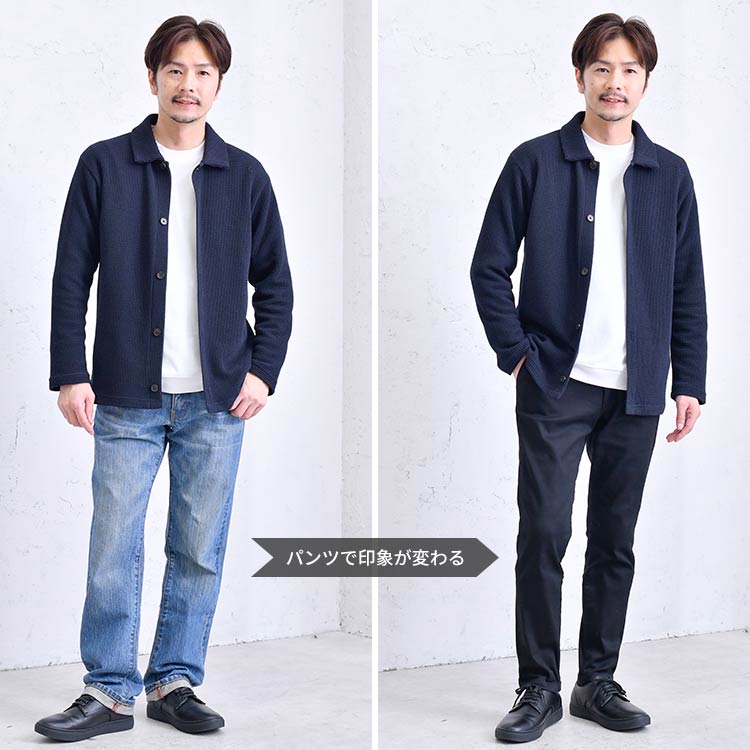 「大人のメンズファッションで、定番のアイテムや着こなしを教えて欲しい。」 「個性的なスタイルよりも、無難で大人っぽい雰囲気をつくる方法を知りたい。」 このようにお悩みの方のために、今回はメンズファッションの定番コーデについてまとめました。 アイテム選びのポイントや着こなしのコツ、コーディネートの注意点まで徹底解説していきます。 おしゃれの基本を押さえるだけでグッとおしゃれな雰囲気になるので、ぜひ最後までチェックしてみてください。 INDEX1 【AUEN厳選】これからの季節、コレさえ手に入れておけば間違いない!2 【AI似合う服診断】をしてみませんか?3 メンズ定番コーデに使う洋服を選ぶときのポイント4 メンズの定番コーデに最適なAUEN(旧:Dコレ)アイテム5 メンズが定番コーデを組むときの注意点6 オシャレなメンズになるための定番コーデ10選7 無難なファッションでファッションの第一歩を踏み出す! 【AUEN厳選】これからの季節、コレさえ手に入れておけば間違いない! AUEN [オーエン]は、服の購入だけではなく、着こなしのヒントやオシャレの基本を学べる”大人のための”メンズブランド。 そんな私たちが今おすすめするのが、「CODEテーパード ウィンター」です。 なぜおすすめなのか、主な理由は3つ。 【おすすめしたい3つのポイント】 仕事から休日までこれ1本で着まわせる 裏起毛で暖かいのに、ストレッチが効いて冬も動きやすい どんなトップスやアウターにもマッチする一本 今の時期に、シンプルでも“ちゃんと見え”する1枚になっています! 【スタイリスト厳選】毎日穿きたい"万能パンツ" イチオシアイテム CODEテーパード ウィンター 詳しくみる 【スタイリスト厳選】万能パンツに合うおすすめアイテム 冬コーデがスッキリきまる ウールメルトンチェスター 詳しくみる 着心地バツグンの冬のメインニット コットンカシミヤニット 詳しくみる 暖かく着回せる大人の上品ニット タートルネックニット 詳しくみる 例えばテーパードパンツとチェスターコート、クルーネックニットを組み合わせることで、このように簡単にカッコいいコーディネートが完成します! 間違いないアイテムをそろえておくことでコーデのベースが整い、きっと今まで以上にオシャレを楽しむことができるはずです。 AUENスタイリスト 他にもどんな服が自分に似合うか知りたい人もご安心を。AUEN [オーエン] アプリの「AI似合う服診断」なら、たった1分で、自分に似合う服をAIが分析してくれます。 2万人以上が利用している無料診断ツール 【AI似合う服診断】をしてみませんか? 人の顔タイプは5つにわけることができ、各パターンごとに似合う服のテイストが異なります! 自分に似合う服を知ることで、よりオシャレに変わることができるんですよ。 あなたがどのパターンか、簡単に診断してみませんか? 診断はこちら メンズ定番コーデに使う洋服を選ぶときのポイント ここでは、メンズファッションにおける定番コーデのポイントについてまとめてみました。 定番コーデは少し工夫するだけでも、一気におしゃれなコーディネートへ格上げできます。 教養のある大人の男性としての魅力もアップしますので、ぜひ参考にしてみてください。 シンプルなデザインで選ぶ 定番コーデをつくる基本は、シンプルなデザインのアイテムを選ぶことです。 無地のデザインや、柄の少ないデザインを選ぶことで、落ち着いた大人の印象をつくれるようになります。 味気ないファッションに感じるかもしれませんが、編み方や素材が異なるアイテムを組み合わせることでコーディネートに表情が生まれます。 また価格帯やブランドによって個性のある雰囲気が楽しめるので、ぜひお気に入りのアイテムを探してみてくださいね。 色の組み合わせを考える シンプルなデザインでも、色の組み合わせによって相手に与える印象をコントロールできます。 落ち着いた印象ならネイビー、チャコールグレー、爽やかな印象ならオフホワイトや淡いアースカラーなどがおすすめです。 まずは落ち着いたカラーを揃えていきながら、着用するシーンに合わせて爽やかなカラーを揃えてみてください。 定番カラーだけでも様々なバリエーションのスタイルが楽しめるので、後半のおすすめコーデもぜひ参考にしてみてください。 サイズ感を意識する 大人の定番コーデでは、細すぎず太すぎない程よい身幅のサイズ感で揃えるのがおすすめです。 自分の体型に合ったサイズ感を意識するだけで、上品で落ち着いた大人の雰囲気を作れるようになります。 トップスの身幅やアーム部分の太さ、パンツの裾幅や丈感など、すべての部分で自分に似合うサイズ感を探してみましょう。 まずは自分の体型に合ったサイズ感のアイテムを使って、複数のコーディネートを作るところから挑戦してみてください。 全体のシルエットを意識する 程よいサイズ感のアイテムが揃ったら、完成後のシルエットも意識してみましょう。 流行りのオーバ