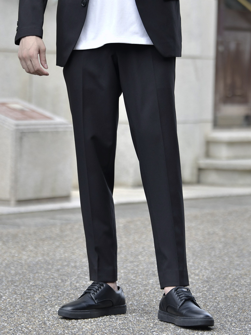CODE3 テーパードスラックスのテーパードシルエットは足元に向かって細くなるデザインで、スタイルをすっきり見せる効果があります。