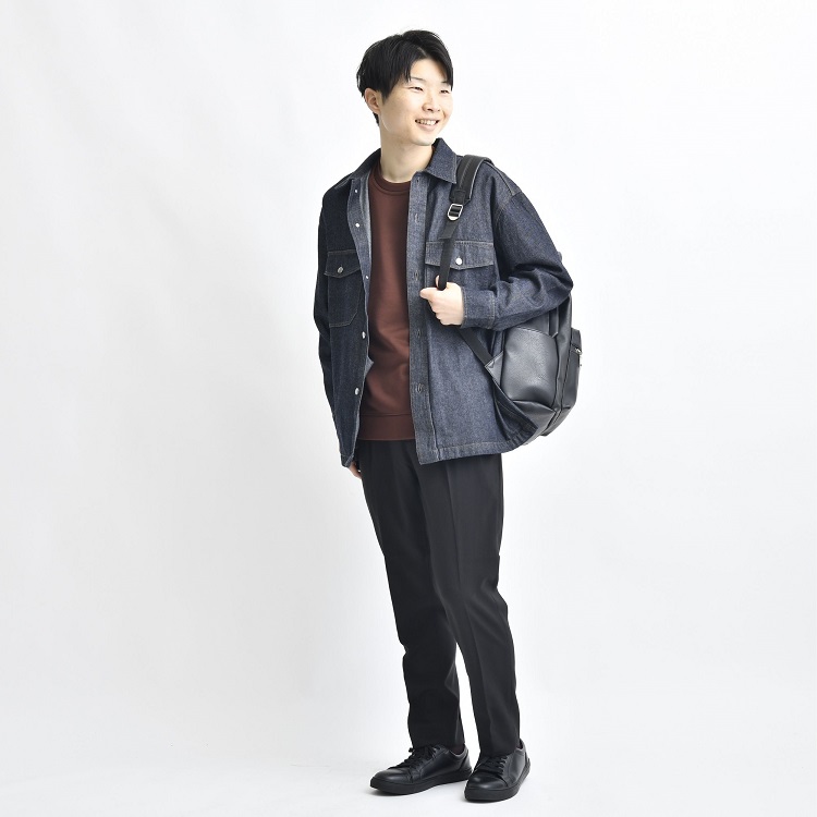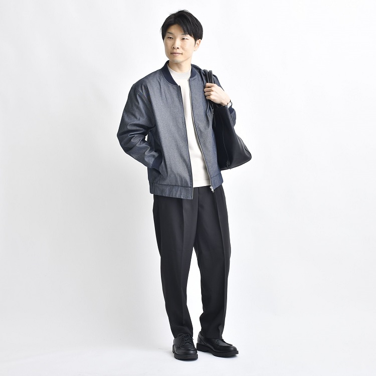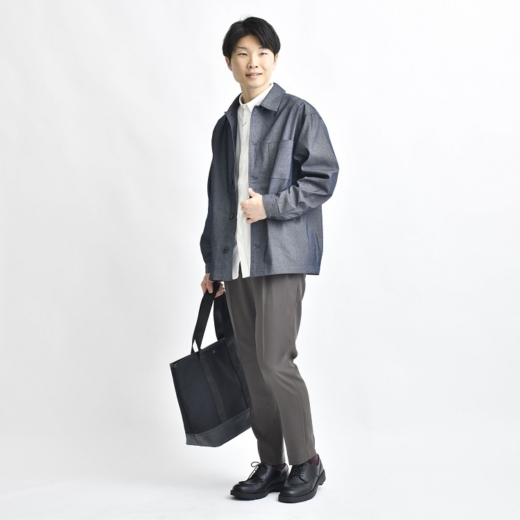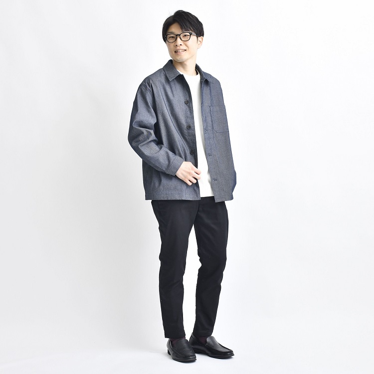 どうも!「全国寒がり選手権」があったら優勝候補のササです。 おわかりいただけると思いますが、アパレルの業界にいると、季節をかなり先取りした動きをすることになります。 福井の道端にはまだ雪が残り、むしろ2月なんてまだ余裕で雪が降る時期だというのに、少し前から春物アイテムがどんどん入荷してきています。 ということで、「寒い」なんて言ってられない! 気分が上がる春物を手に入れて、待ち遠しい春をオシャレに迎えようではありませんか! ライター:ササ 37歳の会社員で2児の父。オシャレでカッコイイ40代になることを直近の目標に据えている。 子どもが産まれてからどんどんカジュアルスタイル一辺倒になっているのが悩み。 ⇒バックナンバーを見る 今回のテーマは、「デニムアウター」です。 定番のカジュアル素材であるデニムで、男らしさたっぷりの3種のジャケットを作りました。販売開始ほやほやです。 例によって試着もしたのですが、どれもほしくなっちゃうくらいの使いやすさ。 羽織って春を満喫する自分を妄想をしてしまいます。 そんなワケで、さっそく魅力を紹介していきますね! デニムアウター3兄弟のプロフィール デニム素材っていいですよね。 コーデに簡単にカジュアルさを加えることができますし、光の当たり具合や使い込み具合で表情が変わるのも楽しい。 そんなデニム素材を使った、この春の新作ジャケットがこちらの3つ。 カバーオール MA-1 デニムシャツ 1つずつ簡単に紹介していきます! デニムカバーオールジャケット 男らしさのあるカバーオールジャケット。 余計な装飾のない、シンプルなデザインで、さまざまなアイテムやコーデにマッチします。 ほどよく明るめのインディゴカラーが春にピッタリ。 出かける間際に羽織るものに困ったら「とりあえずコレ!」と選べる一枚です。 ◆ ◆ ◆ 記事を書くため、このアイテムを手に取って観察していると、みゆがやってきました。 みゆ これ、きっと女子ウケいいですよ!デニムで親しみやすいのに、生地に光沢があってキレイめな大人感もあるのが好き! だそうです。思いがけず女子目線のおトクな情報をGETしましたよ…! 詳細はコチラ デニムMA-1ジャケット もともとはアメリカ空軍の飛行機乗りが着用したMA-1ジャケット。 デニム生地のカジュアルさがあり、シンプルながら地味にならないのがうれしいところ。 ミリタリーの雰囲気があって男らしく、アウターを変えるだけでコーデの印象が変わりますよ。 詳細はコチラ デニムシャツジャケット 上の2つとは生地素材がことなり、デニムらしい色味が特徴。 シャツジャケットという使い勝手のよいアイテムで、アウターと言いつつインナーとしても着用できます。 左右両方についたフラップポケットがさりげないアクセントになってくれますよ。 詳細はコチラ ▼あなたのお好みはどれですか? カバーオール MA-1 デニムシャツ デニムアウターで作る初春コーデ 新作をいち早く着用させていただきまして、僕なりにコーディネートを作ってみました。 参考になりましたら幸いです! シンプルモノトーンコーデにも表情がつく 白の春ニットと、黒スキニーパンツというシンプルなモノトーンコーデ。 ここにデニムカバーオールを羽織るだけで、カジュアルで春らしい軽さが加わります。 まさにデニム生地ならでは!です。 着用アイテム デニムカバーオール 春ニット 黒スキニーパンツ ローファー メガネ シャツコーデにもすっきり馴染む シャツとテーパードパンツ、革靴というキレイめコーデにも、デニムカバーオールはすんなりと馴染みます。 スッキリしたシャツコーデの印象は崩さず、親しみやすい雰囲気に仕上げることができますよ。 着用アイテム デニムカバーオール オックスシャツ テーパードパンツ レザーシューズ トートバッグ ワイドパンツでこなれたテイストを デニムMA-1ジャケットを着用したコーデです。 ワイドパンツを穿くことで、上半身はスリム、下半身はボリュームのあるAラインシルエットに。 男らしいシルエットのため、ミリタリー感のあるMA-1スタイルと好相性です。 着用アイテム デニムMA-1 ジャケニット セミワイドテーパードパンツ レザーシューズ PUレザートート パーカーをインナーして大人カジュアルに ネイビーのワッフル素材のパーカーをインナーに採用しました。 さらにデニムMA-1とスニーカーというカジュアルアイテム多めのコーデなので、黒のパンツでダークトーンにまとめます。 キリッと大人らしい雰囲気に寄せてみました。 着用アイテム デニムMA-1 ワッフルパーカー 黒スキニーパンツ スニーカー チェック柄のパンツで遊び心を チャコールのシャツにデニムシャツをアウターにしたコーデ。 明るさと軽さを補うため、パンツはグレーのチェック柄を選択しました。 シャツにシャツ、そして柄で遊び心を取り入れてみたスタイルです。 着用アイテム デニムシャツジャケット ネルシャツ チェック柄パンツ ローファー トレーナ