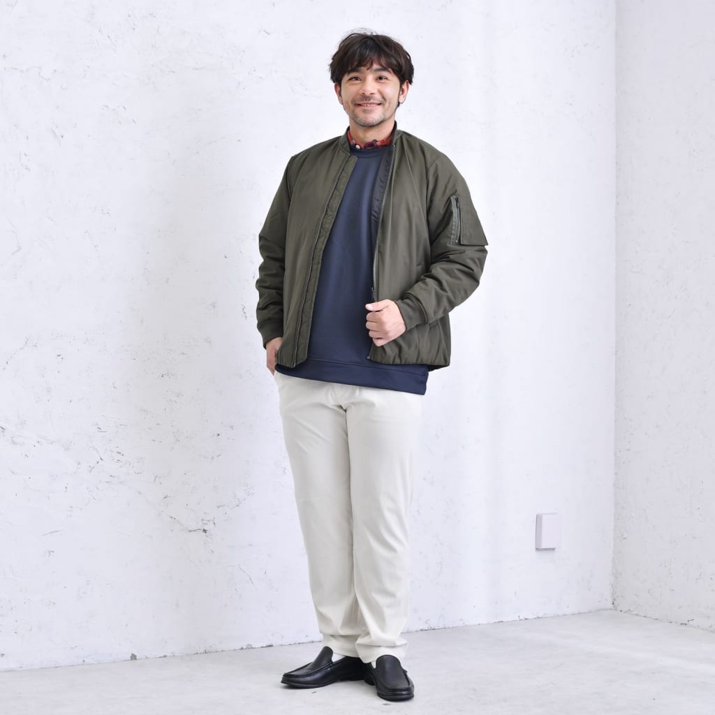 MA-1は、カジュアルなアウターとして愛用されることが多いアイテムですが、実は50代のメンズにもぴったりです。 年齢に関係なくオシャレを楽しみたい方に向けて、今回は50代メンズ向けのおすすめMA-1スタイルとコーディネートを紹介します。 定番のオリーブやブラックを中心にした着こなし例や、大人のコーディネートに適したブランド選びのポイントも解説していきますので、ぜひ参考にしてみてください。 INDEX1 【AUEN厳選】これからの季節、コレさえ手に入れておけば間違いない!2 【AI似合う服診断】をしてみませんか?3 50代メンズにおすすめのMA-1スタイルとコーディネート4 50代メンズが意識すべきMA-1の着こなしポイント5 【最新】売り切れる前にゲットしてほしい人気アイテムランキング6 50代メンズに選んでほしいMA-1とブランド7 【Q&A】50代メンズのMA-1に関するよくある質問にスタイリストがお答え!8 まとめ:MA-1で大人カジュアルファッションを楽しもう! 【AUEN厳選】これからの季節、コレさえ手に入れておけば間違いない! AUEN [オーエン]は、服の購入だけではなく、着こなしのヒントやオシャレの基本を学べる”大人のための”メンズブランド。 そんな私たちが今おすすめするのが、「CODEテーパード ウィンター」です。 なぜおすすめなのか、主な理由は3つ。 【おすすめしたい3つのポイント】 仕事から休日までこれ1本で着まわせる 裏起毛で暖かいのに、ストレッチが効いて冬も動きやすい どんなトップスやアウターにもマッチする一本 今の時期に、シンプルでも“ちゃんと見え”する1枚になっています! 【スタイリスト厳選】毎日穿きたい"万能パンツ" イチオシアイテム CODEテーパード ウィンター 詳しくみる 【スタイリスト厳選】万能パンツに合うおすすめアイテム 冬コーデがスッキリきまる ウールメルトンチェスター 詳しくみる 期間限定で1,000円OFF ニット×シャツ2点セット 詳しくみる 着心地バツグンの上品ニット カシミヤ混タートルニット 詳しくみる 例えばテーパードパンツとチェスターコート、クルーネックニットを組み合わせることで、このように簡単にカッコいいコーディネートが完成します! 間違いないアイテムをそろえておくことでコーデのベースが整い、きっと今まで以上にオシャレを楽しむことができるはずです。 AUENスタイリスト 他にもどんな服が自分に似合うか知りたい人もご安心を。AUEN [オーエン] アプリの「AI似合う服診断」なら、たった1分で、自分に似合う服をAIが分析してくれます。 2万人以上が利用している無料診断ツール 【AI似合う服診断】をしてみませんか? 人の顔タイプは5つにわけることができ、各パターンごとに似合う服のテイストが異なります! 自分に似合う服を知ることで、よりオシャレに変わることができるんですよ。 あなたがどのパターンか、簡単に診断してみませんか? 診断はこちら 50代メンズにおすすめのMA-1スタイルとコーディネート MA-1はカジュアルなアウターとして知られていますが、実は50代の方にも似合うスタイルとコーディネートがあります。 以下では、50代におすすめのMA-1のスタイルとコーディネートをご紹介しますので、参考にしてみてください。 シンプルなMA-1でキレイめコーデに程よくラフ感を! 無駄な装飾がないシンプルなMA-1は、50代メンズの大人コーデに最適です。 キレイめをベースにしたコーデに取り入れることで程よいラフ感が加わって、親近感のある着こなしに仕上がりますよ。 PUレザースニーカーを採用することで、大人っぽい印象を強められるので試してみてください。 着用アイテム 大人テック中綿MA-1ジャケット 大人ミラノリブ編みクルーネックニット 防しわストライプ柄シャツ 大人プレミアムセミワイドパンツ 外羽PUレザースニーカー 洗練された大人のアウトドアルックコーデ アクティブシーンでも快適に、オシャレに見せたい人にオススメなのがこのコーデです。 MA-1は大人のための洗練されたデザインに、撥水・防風・調温の機能が凝縮されているので、機能性を重視しているなら試してみてください。 首元にはモックネックTシャツをちらりと見せ、アイボリーのコーデュロイパンツで全体をまとめています。 男性らしく頼りがいのある印象に仕上がるので、カジュアルファッションにチャレンジしたならおすすめです。 着用アイテム 大人テック中綿MA-1ジャケット 大人ミラノリブ編みクルーネックニット 大人暖かインナー専用 裏起毛長袖Tシャツ 大人のコーデュロイパンツ スプリットレザーUチップシューズ 男らしさ引き立つ!王道カジュアルコーデ 男らしさが引き立つ、MA-1+パーカー+スニーカーの王道カジュアルコーデ。 顔の周りを暗めの色合いでまとめることで、カッコよくまとまります。 さらに細身のパンツを合わせてすっきりしたシルエットにすることで、シャープなシルエットが強調されますよ! 着用アイテム 機能性MA-1ジャケット 大人プルパーカー 大人のコーデュロイパンツ 外羽PUレザースニーカー 