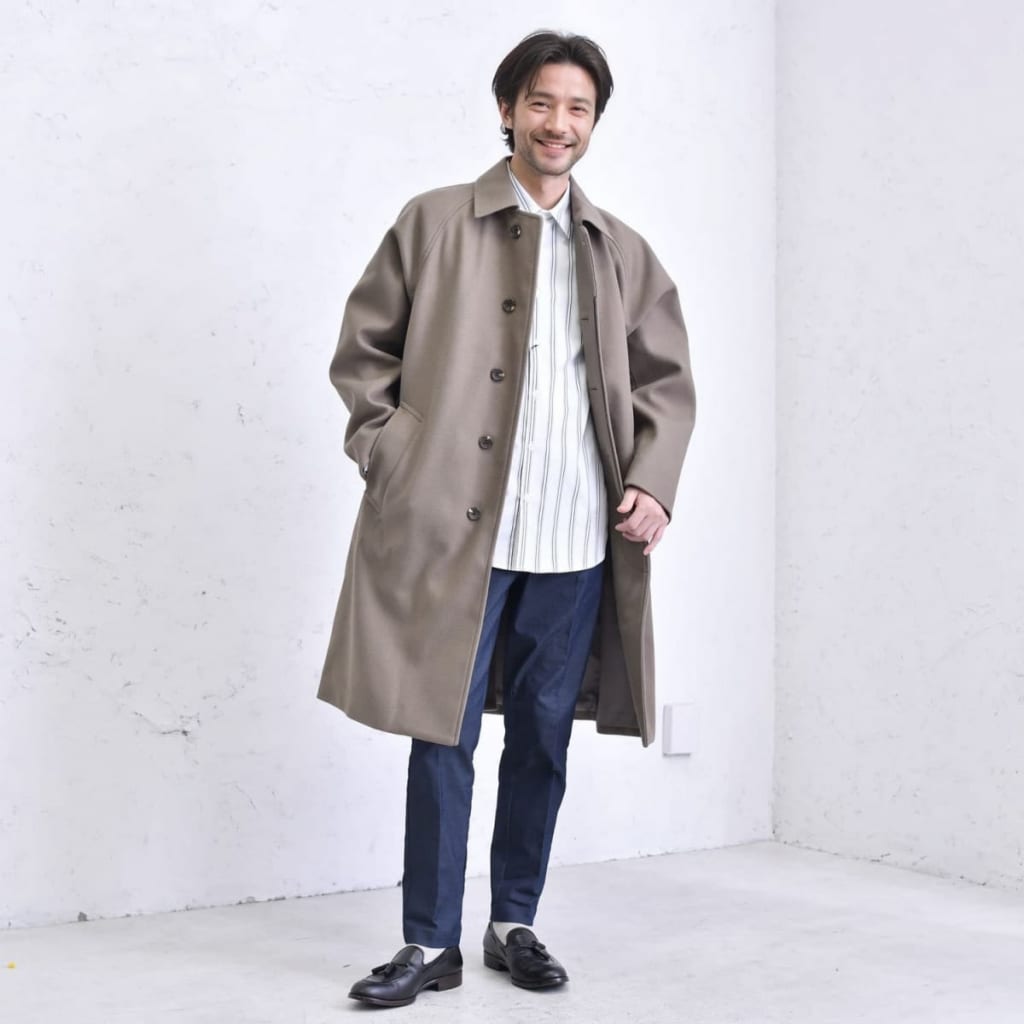 中年に差し掛かると、洗練されたスタイルと上質なファッションがより重要となります。 その中でも、コートは冷え込む季節において特に重要なアイテム。 大人の風格を漂わせる上質なコートスタイルは、着る人の印象を格上げします。 この記事では「コートの選び方が分からない」「コートとの組み合わせ方が難しい」とお悩みの方に、中年メンズに似合うコートの選び方やスタイリングのコツを詳しく解説いたします。 INDEX1 【AUEN厳選】これからの季節、コレさえ手に入れておけば間違いない!2 【AI似合う服診断】をしてみませんか?3 中年メンズに似合うコートの種類4 中年メンズがコートを選ぶときのポイント5 中年メンズに最適なAUEN(旧:Dコレ)のコート6 中年メンズに真似してほしいコートコーデ10選7 大人用コートで暖かさとカッコよさを手に入れる! 【AUEN厳選】これからの季節、コレさえ手に入れておけば間違いない! AUEN [オーエン]は、服の購入だけではなく、着こなしのヒントやオシャレの基本を学べる”大人のための”メンズブランド。 そんな私たちが今おすすめするのが、「CODEテーパード ウィンター」です。 なぜおすすめなのか、主な理由は3つ。 【おすすめしたい3つのポイント】 仕事から休日までこれ1本で着まわせる 裏起毛で暖かいのに、ストレッチが効いて冬も動きやすい どんなトップスやアウターにもマッチする一本 今の時期に、シンプルでも“ちゃんと見え”する1枚になっています! 【スタイリスト厳選】毎日穿きたい"万能パンツ" イチオシアイテム CODEテーパード ウィンター 詳しくみる 【スタイリスト厳選】万能パンツに合うおすすめアイテム 冬コーデがスッキリきまる ウールメルトンチェスター 詳しくみる 着心地バツグンの冬のメインニット コットンカシミヤニット 詳しくみる 暖かく着回せる大人の上品ニット タートルネックニット 詳しくみる 例えばテーパードパンツとチェスターコート、クルーネックニットを組み合わせることで、このように簡単にカッコいいコーディネートが完成します! 間違いないアイテムをそろえておくことでコーデのベースが整い、きっと今まで以上にオシャレを楽しむことができるはずです。 AUENスタイリスト 他にもどんな服が自分に似合うか知りたい人もご安心を。AUEN [オーエン] アプリの「AI似合う服診断」なら、たった1分で、自分に似合う服をAIが分析してくれます。 2万人以上が利用している無料診断ツール 【AI似合う服診断】をしてみませんか? 人の顔タイプは5つにわけることができ、各パターンごとに似合う服のテイストが異なります! 自分に似合う服を知ることで、よりオシャレに変わることができるんですよ。 あなたがどのパターンか、簡単に診断してみませんか? 診断はこちら 中年メンズに似合うコートの種類 年齢を重ねるにつれて、洗練されたファッションが求められる中年メンズ。 その中でも、コートはスタイリッシュでありながら実用的なアイテムとして重要な位置を占めます。 こちらでは中年メンズにぴったりなコートをご紹介します。 チェスターコート チェスターコートは優雅なデザインとクラシックなシルエットで、年齢に相応しい上品さを演出するアイテムです。 フロントにあしらわれた大きな襟、そしてウエスト部分で絞りを入れたシルエットにより、品格ある中年の雰囲気を引き立てつつ、スマートで洗練された印象を与えます。 寒い季節には保温性も兼ね備え、快適な着心地を提供します。色はクラシックなネイビー、チャコールグレー、カーキなどが一般的で、シンプルながらもエレガントな印象を醸し出します。 ステンカラーコート ステンカラーコートの特徴はボタンが高めに配置されていること。これにより、シンプルでありながらも上品で品格のある印象を演出します。 ビジネスカジュアルからカジュアルまで様々なスタイルに合わせやすく、ワードローブの中で幅広い用途に使えます。 ウール素材が使われることが多く、保温性が高いのが魅力。寒い季節に心地よい暖かさを提供しながら、上品で都会的な雰囲気を醸し出します。 Pコート Pコートはクラシックでありながらも現代的なコートです。 ダブルブレストのデザインと幅広い襟で、シンプルでありながらも重厚感のある印象を与え、中年の大人らしさを引き立てます。 一般的にはウール素材が使用され、防寒性に優れつつ、コンパクトで軽い着心地が特徴。Pコートは寒冷な季節にしっかりと暖かさを提供しながら、スマートなシルエットでシーンを選ばず活躍します。 ダッフルコート ダッフルコートは大きなトグルボタンとフードが付いた、温かみとスタイルを兼ね備えたコートです。 ダッフルコートは通常、ウールやカシミアなどの高品質な素材で作られ、寒冷な季節に頼りになる保温性を提供します。 また、そのシンプルでクラシックなデザインは、ビジネスカジュアルからカジュアルまでさまざまなスタイルに合わせやすく、着こなしの自
