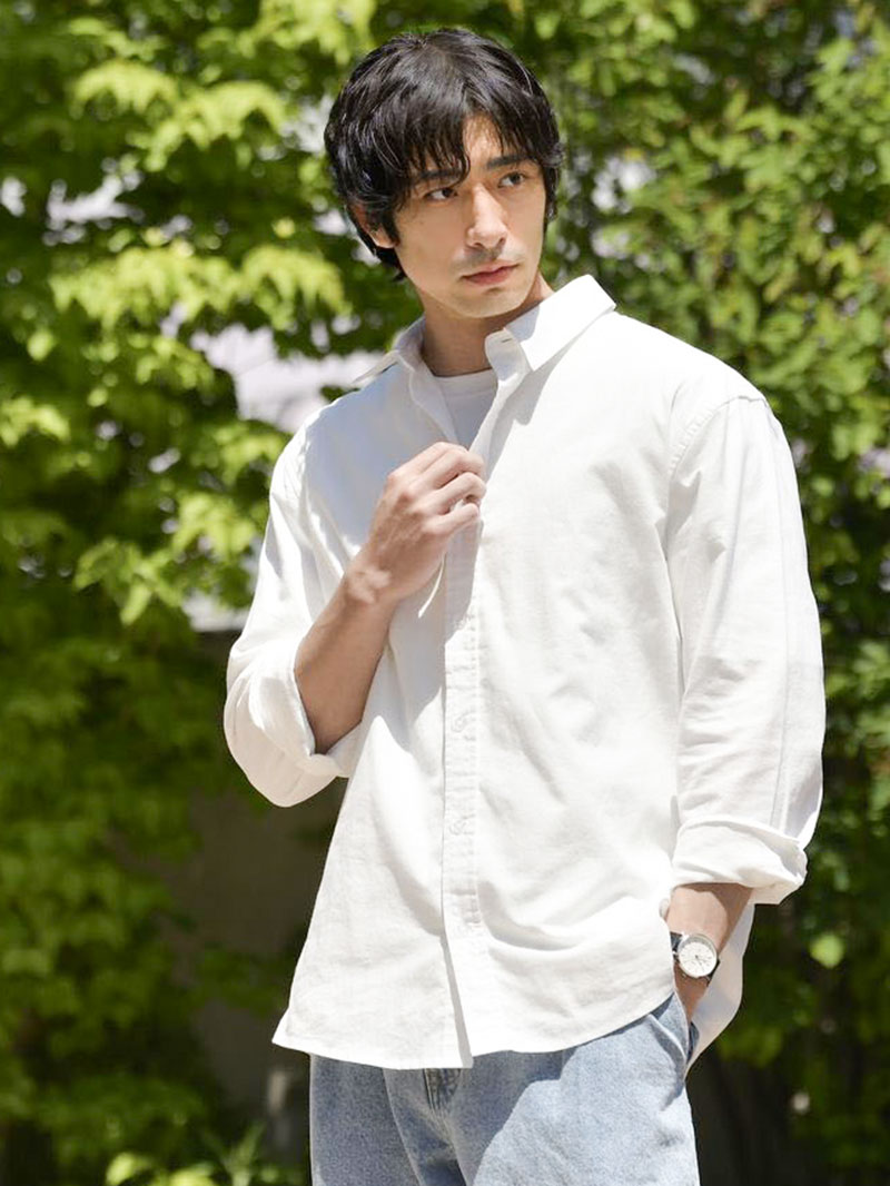 清潔感のあるホワイトシャツスタイルはオフィスにも最適で、サファリシャツやストライプシャツのカジュアルな着こなしは休日のカフェスタイルにもぴったり。