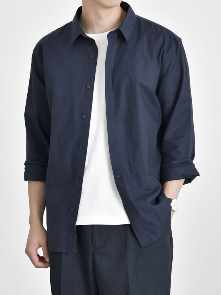 麻シャツのような、さらっと涼しく爽やかな着心地を備えながら、お手入れは簡単でシワになりにくいストレスフリー設計を実現したシャツ。