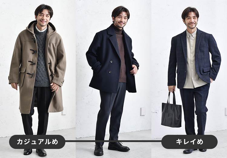 寒さが厳しくなる真冬の季節、おしゃれな服装で暖かく過ごしたいですよね。 この記事では、真冬の服装に悩むメンズのために、おしゃれかつ保温性抜群のコーディネートをご紹介します。 こちらの記事を参考にしながら、大人の魅力を引き出すスタイリッシュな着こなしをお楽しみください。 INDEX1 【AUEN厳選】これからの季節、コレさえ手に入れておけば間違いない!2 【AI似合う服診断】をしてみませんか?3 真冬におすすめのおしゃれなメンズコーデ10選4 真冬の大人コーデを彩るアイテム選びのポイント5 おしゃれメンズが着こなす冬のアイテム6選6 【Q&A】真冬のメンズ服装に関するよくある質問7 まとめ 【AUEN厳選】これからの季節、コレさえ手に入れておけば間違いない! AUEN [オーエン]は、服の購入だけではなく、着こなしのヒントやオシャレの基本を学べる”大人のための”メンズブランド。 そんな私たちが今おすすめするのが、「CODEテーパード ウィンター」です。 なぜおすすめなのか、主な理由は3つ。 【おすすめしたい3つのポイント】 仕事から休日までこれ1本で着まわせる 裏起毛で暖かいのに、ストレッチが効いて冬も動きやすい どんなトップスやアウターにもマッチする一本 今の時期に、シンプルでも“ちゃんと見え”する1枚になっています! 【スタイリスト厳選】毎日穿きたい"万能パンツ" イチオシアイテム CODEテーパード ウィンター 詳しくみる 【スタイリスト厳選】万能パンツに合うおすすめアイテム 冬コーデがスッキリきまる ウールメルトンチェスター 詳しくみる 着心地バツグンの冬のメインニット コットンカシミヤニット 詳しくみる 暖かく着回せる大人の上品ニット タートルネックニット 詳しくみる 例えばテーパードパンツとチェスターコート、クルーネックニットを組み合わせることで、このように簡単にカッコいいコーディネートが完成します! 間違いないアイテムをそろえておくことでコーデのベースが整い、きっと今まで以上にオシャレを楽しむことができるはずです。 AUENスタイリスト 他にもどんな服が自分に似合うか知りたい人もご安心を。AUEN [オーエン] アプリの「AI似合う服診断」なら、たった1分で、自分に似合う服をAIが分析してくれます。 2万人以上が利用している無料診断ツール 【AI似合う服診断】をしてみませんか? 人の顔タイプは5つにわけることができ、各パターンごとに似合う服のテイストが異なります! 自分に似合う服を知ることで、よりオシャレに変わることができるんですよ。 あなたがどのパターンか、簡単に診断してみませんか? 診断はこちら 真冬におすすめのおしゃれなメンズコーデ10選 まずは真冬におすすめしたいおしゃれなメンズのコーディネートをご紹介します。 防寒対策もばっちりのスタイルを厳選して10コーデをまとめてみました。 ぜひ参考にしながら、今年は暖かくておしゃれな冬を楽しんでくださいね。 冬でもオシャレなジャケパンコーデ 大人の男性の魅力がグッと高まる、重厚感たっぷりのジャケパンコーデ。 AUEN(旧:Dコレ)で大人気シリーズの冬専用ジャケットに、裏地がフリース素材のパンツを合わせてみました。 暖かさとオシャレさの両方を兼ね備えたコーデを作ることができますよ。 着用アイテム 大人のフェイクウールテーラードジャケット 大人のミニケーブルクルーネックニット EAZY whoop’-de-doo’ プレーントゥ レザーシューズ 大人のミラノリブ リバーシブルマフラー ブラウンのタートルネックで洗練された印象に 大人の男性が好印象をゲットするためには「キレイめ」を意識するのがおすすめ。 仕事でもカジュアルシーンでも、必ず押さえておきたいポイントです。 インナーのニットには女性ウケが良いタートルネックを合わせて、洗練された大人の男性を演出しましょう。 着用アイテム 大人のPコート 大人のミラノリブ タートルネックニット 大人のテーパードパンツ whoop’-de-doo’ プレーントゥサイドゴア ショートブーツ ネイビーでまとめる大人のオシャレコーデ ネイビーカラーのチェスターコートは、羽織るだけで上品、清潔感、大人っぽさを手に入れられるアイテム。 オフィスやデートシーンはもちろん、普段着に取り入れることでおしゃれな大人コーデを作ることもできます。 冬のアウターは固定されがちなので、インナーのレイヤードで変化を見せることがポイントです。 着用アイテム 大人のフェイクウールチェスターコート 大人のチェック柄ネルシャツ 防しわレギュラーカラー 大人の暖かインナー専用 裏起毛長袖Tシャツ 大人のテーパードパンツ whoop’-de-doo’ モカシンレザーソールローファー 大人の冬コーデにはエレガントさがマスト スマートで大人カッコいいシングルライダースジャケットに、ワイドパンツを合わせたオシャレ上級者のコーデ。 ゆったりとしたシルエットは、男性らしく頼りがいのある雰囲気に仕上がるので、女性からの印象も◎ 重たくなりがちな冬のコーデには、上品なカラーを