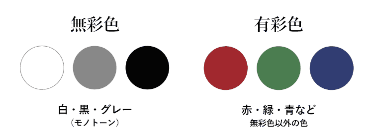 色は 「無彩色」と「有彩色」の2種類 に大きく分けられます。
