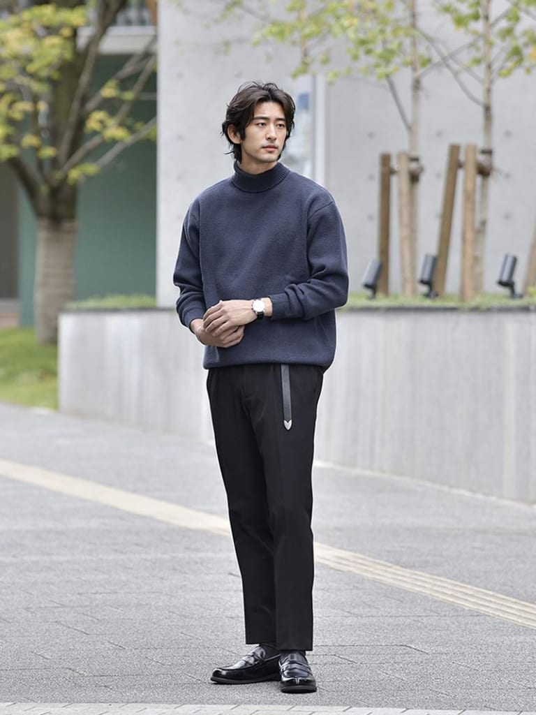 スリムスラックスは近年、大変人気があるメンズアイテムです。しかし、さまざまな種類があるため、選び方や着こなし方には注意が必要です。 今回は、体型を考慮したスリムスラックスの選び方やコーディネートなど、さまざまな観点からスラックスのポイントをお伝えしていきます。 スタイリッシュでスマートなスリムスラックスの着こなし術を身に付けましょう。 INDEX1 【AUEN厳選】これからの季節、コレさえ手に入れておけば間違いない!2 【AI似合う服診断】をしてみませんか?3 メンズスリムスラックスの正しい選び方4 メンズスリムスラックスを選ぶ際の注意点5 スリムスラックスで魅せる!メンズの洗練コーデ10選6 スタイリスト厳選!スリムスラックスコーデに取り入れたいメンズアイテム7 【最新】売り切れる前にゲットしてほしい人気アイテムランキング8 【Q&A】「スラックス メンズ スリム」に関するよくある質問にスタイリストがお答え!9 スリムスラックスで洗練されたメンズコーデを! 【AUEN厳選】これからの季節、コレさえ手に入れておけば間違いない! AUEN [オーエン]は、服の購入だけではなく、着こなしのヒントやオシャレの基本を学べる”大人のための”メンズブランド。 そんな私たちが今おすすめするのが、「CODEテーパード ウィンター」です。 なぜおすすめなのか、主な理由は3つ。 【おすすめしたい3つのポイント】 仕事から休日までこれ1本で着まわせる 裏起毛で暖かいのに、ストレッチが効いて冬も動きやすい どんなトップスやアウターにもマッチする一本 今の時期に、シンプルでも“ちゃんと見え”する1枚になっています! 【スタイリスト厳選】毎日穿きたい"万能パンツ" イチオシアイテム CODEテーパード ウィンター 詳しくみる 【スタイリスト厳選】万能パンツに合うおすすめアイテム 冬コーデがスッキリきまる ウールメルトンチェスター 詳しくみる 期間限定で1,000円OFF ニット×シャツ2点セット 詳しくみる 着心地バツグンの上品ニット カシミヤ混タートルニット 詳しくみる 間違いないアイテムをそろえておくことでコーデのベースが整い、きっと今まで以上にオシャレを楽しむことができるはずです。 AUENスタイリスト 他にもどんな服が自分に似合うか知りたい人もご安心を。AUEN [オーエン] アプリの「AI似合う服診断」なら、たった1分で、自分に似合う服をAIが分析してくれます。 2万人以上が利用している無料診断ツール 【AI似合う服診断】をしてみませんか? 人の顔タイプは5つにわけることができ、各パターンごとに似合う服のテイストが異なります! 自分に似合う服を知ることで、よりオシャレに変わることができるんですよ。 あなたがどのパターンか、簡単に診断してみませんか? 診断はこちら メンズスリムスラックスの正しい選び方 まずは、スリムスラックスの選び方について解説していきます。 スリムタイプだからこその選び方があるので、しっかりとチェックしておきましょう! 適切なサイズを選択する ▲着用しているアイテムはコチラ スリムスラックスを選ぶ際は、ジャストサイズを見つけることが重要です。身体に合ったサイズのパンツを選んでください。 ヒザ下をぴったりとフィットさせ、ヒップにも適度なゆとりがあるサイズが理想的です。また、「ワイド」や「スリム」といった表記で、ワタリ幅の目安を確認することができるモデルもあるため、自身の体型に合ったシルエットを見つけましょう。 脚の快適性を考える ▲着用しているアイテムはコチラ 初心者がスキニーなどのタイトなスリムスラックスを選ぶと、脚への負担が大きくなる可能性があります。 試着時は問題なくても、長時間の着用では痛みが出てくる場合があります。ビギナーの方は、脚の動きやすさを重視したスラックスを選ぶことをおすすめします。ストレッチ性に優れ、股上も深めのパンツは快適な履き心地を提供します。 自身の体型に合わせる ▲着用しているアイテムはコチラ 多くの日本人に見られる「O脚」の特徴を考慮しないスリムスラックスでは、シルエットが残念なものになる可能性があります。 ヒザ下の絞り込みが適度なパターンのスラックスを選ぶと、脚のラインを美しく見せることができます。 ブランドによっては、日本人の体型に合わせて設計されたものもあるため、自身の体型に合ったパンツを選びましょう。 目次へ戻る 「大人っぽくて、カッコいい」 人気ランキングTOP10 カテゴリ別ランキングはコチラ AUENスタイリスト 好印象になれるポイントは、大人っぽくて、清潔感のある服装を心がけること! AUEN [オーエン] のアイテムを着こなすことで、すぐに好印象になれちゃいます! メンズスリムスラックスを選ぶ際の注意点 スリムスラックスを選ぶ際は、注意点もスリムタイプならではのものがあります。 注意点について解説していくので、チェックしておきましょう。 機能性を重視する スリムスラックスを選ぶ際は、見た目の美しさだけでなく、実用性も考慮する必