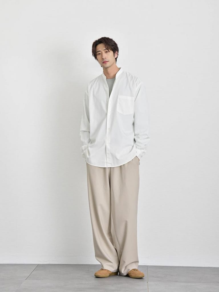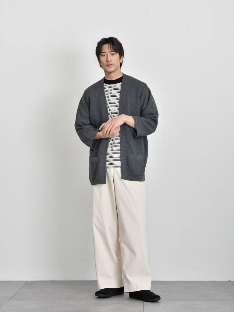 昨今のメンズファッションシーンでは、ワイドパンツがブームになっています。 しかし、細身のメンズがワイドパンツを着こなすには、いくつかのコツが必要です。 そこで今回の記事では、細身なメンズがワイドパンツをスマートに着こなすための選び方やコーディネートをご紹介します。 最新のトレンドを取り入れつつ、自分に似合うスタイルを見つけてみましょう! INDEX1 【AUEN厳選】これからの季節、コレさえ手に入れておけば間違いない!2 【AI似合う服診断】をしてみませんか?3 細身メンズに似合うワイドパンツの選び方4 細身メンズにおすすめのAUEN(旧:Dコレ)ワイドパンツ5 細身メンズのワイドパンツコーデ11選6 細身メンズが避けるべきワイドパンツの特徴7 細身メンズのワイドパンツコーデにおすすめのAUEN(旧:Dコレ)のトップス8 【最新】売り切れる前にゲットしてほしい人気アイテムランキング9 【Q&A】「ワイドパンツ 細身 メンズ」に関するよくある質問にスタイリストがお答え!10 ワイドパンツで細身メンズのスタイルを活かしたオシャレなコーディネートを! 【AUEN厳選】これからの季節、コレさえ手に入れておけば間違いない! AUEN [オーエン]は、服の購入だけではなく、着こなしのヒントやオシャレの基本を学べる”大人のための”メンズブランド。 そんな私たちが今おすすめするのが、「CODEテーパード ウィンター」です。 なぜおすすめなのか、主な理由は3つ。 【おすすめしたい3つのポイント】 仕事から休日までこれ1本で着まわせる 裏起毛で暖かいのに、ストレッチが効いて冬も動きやすい どんなトップスやアウターにもマッチする一本 今の時期に、シンプルでも“ちゃんと見え”する1枚になっています! 【スタイリスト厳選】毎日穿きたい"万能パンツ" イチオシアイテム CODEテーパード ウィンター 詳しくみる 【スタイリスト厳選】万能パンツに合うおすすめアイテム 冬コーデがスッキリきまる ウールメルトンチェスター 詳しくみる 期間限定で1,000円OFF ニット×シャツ2点セット 詳しくみる 着心地バツグンの上品ニット カシミヤ混タートルニット 詳しくみる 例えばテーパードパンツとチェスターコート、クルーネックニットを組み合わせることで、このように簡単にカッコいいコーディネートが完成します! 間違いないアイテムをそろえておくことでコーデのベースが整い、きっと今まで以上にオシャレを楽しむことができるはずです。 AUENスタイリスト 他にもどんな服が自分に似合うか知りたい人もご安心を。AUEN [オーエン] アプリの「AI似合う服診断」なら、たった1分で、自分に似合う服をAIが分析してくれます。 2万人以上が利用している無料診断ツール 【AI似合う服診断】をしてみませんか? 人の顔タイプは5つにわけることができ、各パターンごとに似合う服のテイストが異なります! 自分に似合う服を知ることで、よりオシャレに変わることができるんですよ。 あなたがどのパターンか、簡単に診断してみませんか? 診断はこちら 細身メンズに似合うワイドパンツの選び方 細身な男性がワイドパンツを選ぶ際は、いくつかの重要なポイントがあります。 人気のワイドパンツですが、履けばいいというわけではなく、自分の体型に合わせたスマートな着こなしが必要です。 ポイントをご紹介していくので、チェックしておきましょう! シルエットの選び方 ▲着用しているアイテムはコチラ 細身な男性がワイドパンツを選ぶ最大のポイントは、「程よいシルエット」です。 極端に太すぎるワイドパンツは体型を台無しにしてしまいます。 理想的なのは、裾に向かってテーパードがかかっているパンツ。 足首部分が細くなっているデザインが、スマートな印象を作り出します。 サイズの選び方 ▲着用しているアイテムはコチラ ウエスト周りが細身な男性は、ゆったりしすぎないウエストサイズを選びましょう。 ベルトでしっかり調整できるものが理想的です。 股下の長さは短めがおすすめ。 長すぎると足が短く見えてしまうリスクがあります。 くるぶし中央くらいの長さが最適です。 カラーの選び方 ▲着用しているアイテムはコチラ 細身な男性に似合うワイドパンツは、落ち着いた色味が鍵。 ネイビーやグレー、カーキなどのダークトーンや、ニュートラルカラーがおすすめです。 トップスとのバランス ▲着用しているアイテムはコチラ ワイドパンツを着こなすには、トップスとのバランスが重要。 細身なメンズは以下のアイテムを選ぶと良いでしょう。 テーラードジャケット シャツ シンプルなニット 短めのシャツやブルゾン 合わせ方を間違えると、野暮ったく見えてしまうので注意が必要です。 目次へ戻る 「大人っぽくて、カッコいい」 人気ランキングTOP10 カテゴリ別ランキングはコチラ AUENスタイリスト 好印象になれるポイントは、大人っぽくて、清潔感のある服装を心がけること! AUEN [オーエン] のアイテムを着こなすことで、すぐに好印象になれちゃいます! 細身メンズにおすすめのAUEN(