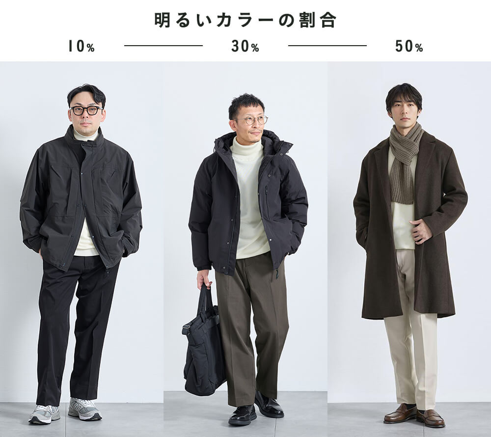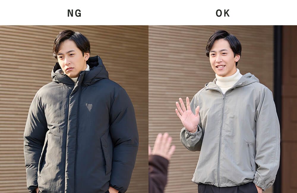冬の服装は、気付かないうちに”着こなしの失敗”をしやすい季節です。 「なんとなく重たい」「野暮ったく見える」その違和感は、冬に潜んでいる”やらかし”ファッションの影響かもしれません。 冬にやってしまいがちなパターンから見ていきましょう。 冬の“やらかし”パターン3選 やらかし01「着膨れして見える」 やらかし02「ニット毛玉だらけ」 やらかし03「全体が重く見える」 着ぶくれで“やらかし” ~ シルエットに気をつけよう ~ 寒さ対策で重ね着しすぎると、全体が横に広がりがちです。特にインナーを着込みすぎると、シルエットが崩れます。 厚手インナー+ニット+アウターでモコモコだと体のラインがぼやけてしまいます。機能性インナーを使って、着込み過ぎないことを意識しましょう。 “やらかし”解消アイテム AUENでは体温や光を吸収し、内側から温めてくれるLIGHT TECHインナーを取り扱っています。 そのため、重ね着を最小限に抑え、何枚もトップスを着込まずに暖かさを確保できます。 LIGHT TECHシリーズ クルーネックインナーTシャツ check VネックインナーTシャツ check ニットの毛玉で“やらかし” ~ 清潔感に気をつけよう ~ ニットの毛玉は、冬コーデの印象を一気に下げる要因です。どんなに色やシルエットが良くても、清潔感が損なわれます。 毛玉の「なりやすさ」で比較 毛玉になりやすい素材 化学繊維アクリル / ポリエステル etc 動物繊維ウール / カシミア etc 毛玉になりにくい素材 天然素材コットン / シルク etc コットン混素材コットン×他素材 毛玉の「目立ちやすさ」で比較 毛玉が目立ちやすい色 濃色黒 / ネイビー etc 毛玉が目立ちにくい色 中間色グレージュ / ベージュ etc “やらかし”解消アイテム AUENではコットンやシルク素材を混紡したニットを取り扱っています。 そのため、毛玉になりにくく、ニット特有のチクチク感もなく、安心して着用できます。 コットンカシミヤクルーネックニット check ハイゲージシルクタートルニット check 全身黒で“やらかし” ~ 色合わせに気をつけよう ~ 冬はコートやダウンジャケットなど、買い替え頻度の少ないアウター需要が高まる季節。 そのため、定番で失敗しない色(黒・ネイビー・ブラウンなど)選ぶ傾向があります。 気づくと、上下ともに暗く、コーディネートが重たい印象になっていませんか。 ポイントは、白やベージュなどの明るいカラーの使い方です。 上手に取り入れるコツ 顔まわりに明るい色を“少量”入れる顔に近い位置に明るさが入ると、コーデ全体が軽やかに見えます。 「真っ白」より“くすみ白・淡ベージュ”を選ぶアウターに多い濃色と自然に馴染むので、明るい色が浮きすぎません。 すべてを明るくする必要はありません。 インナーで白やベージュの明るいカラーを少し足すだけで、印象は変わります。 明るいカラーの比率が多くなれば、春らしい着こなしに変化します。 “やらかし”解消アイテム おすすめは、インナーやマフラーで白やベージュといった明るいカラーを取り入れること。 爽やかな印象や親しみやすい印象もプラスできます。 ハイゲージシルクタートルニット check リバーシブルマフラー check “やらかし”を避ければ冬はコーデがもっと楽しめる 冬コーデの失敗は、センスではなく“選び方”の問題です。 シルエットが整っているか 清潔感があるか 暗い色合わせになっていないか この3点を意識するだけで、着回しは一気に安定します。 失敗を避ける視点を持てば、手持ち服でも、十分カッコよくなれます。 この冬は「やらかさない」選び方で、安心して冬のオシャレを楽しんでみてください。