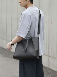 【身長:176cm / 体重:61kg / 購入サイズ:F】 箱から開けた瞬間、妻から「女性用買ったの?」と言われるほど、思ってたより少し小さめな印象でした。フォルムやデザインはとても良いのですが、大柄な男性は特にサイズ感気にして検討された方が良いと思いました。耐久性は良さそうなので仕事でもプライベートでも多用途に使えそうです。ポケットがないのもバッグインバッグなどでいくらでもカバーできるので自由度がある分良いと思いました。