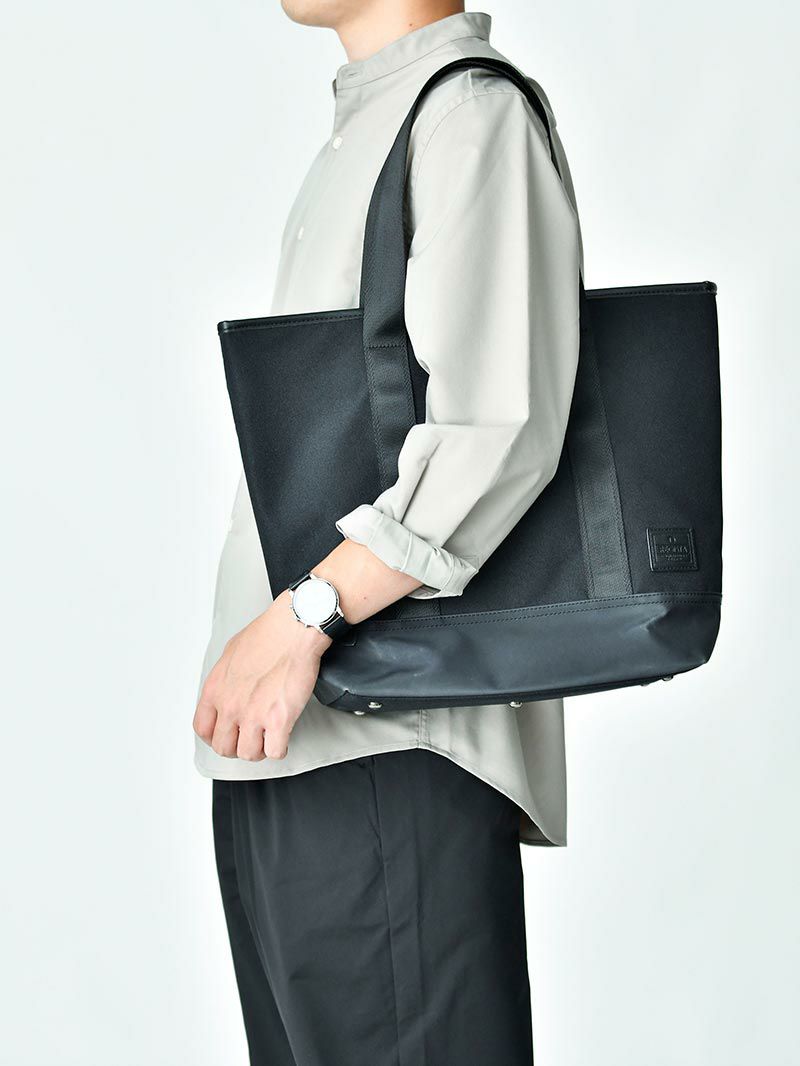 ダークグレーのテーラードジャケットは上品な印象を与え、オフホワイトのLIQUIDニットで柔らかさをプラスします。ホワイトのADAPTERシャツで清潔感を保ち、ブラックのテーパードスラックスとレザーシューズで全体を引き締めることで、落ち着きのある雰囲気のコーディネートが完成します。