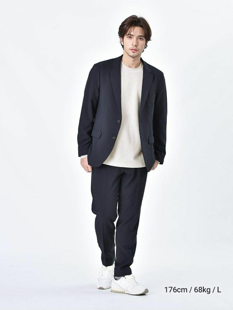 セットアップでまとめて統一感のあるスタイルに。シンプルながらも洗練された印象を、カジュアルな場所からフォーマルなシーンまで幅広く活躍します。