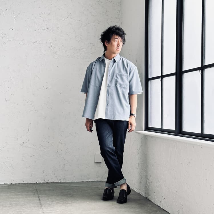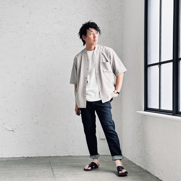30代男性必見!デニム×バントカラーシャツの最旬スタイル