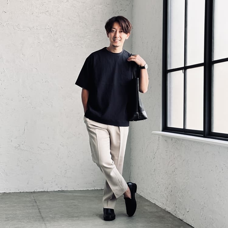 これが定番!白シャツ×黒テーパードパンツでつくるシンプルコーデ