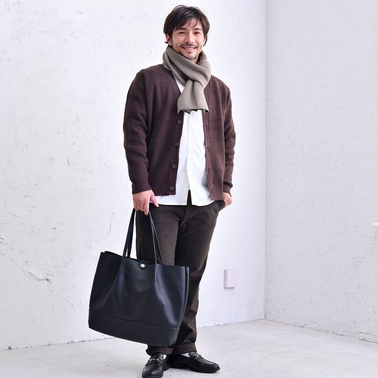 軽快&暖か!グレーカーディガンの着こなし