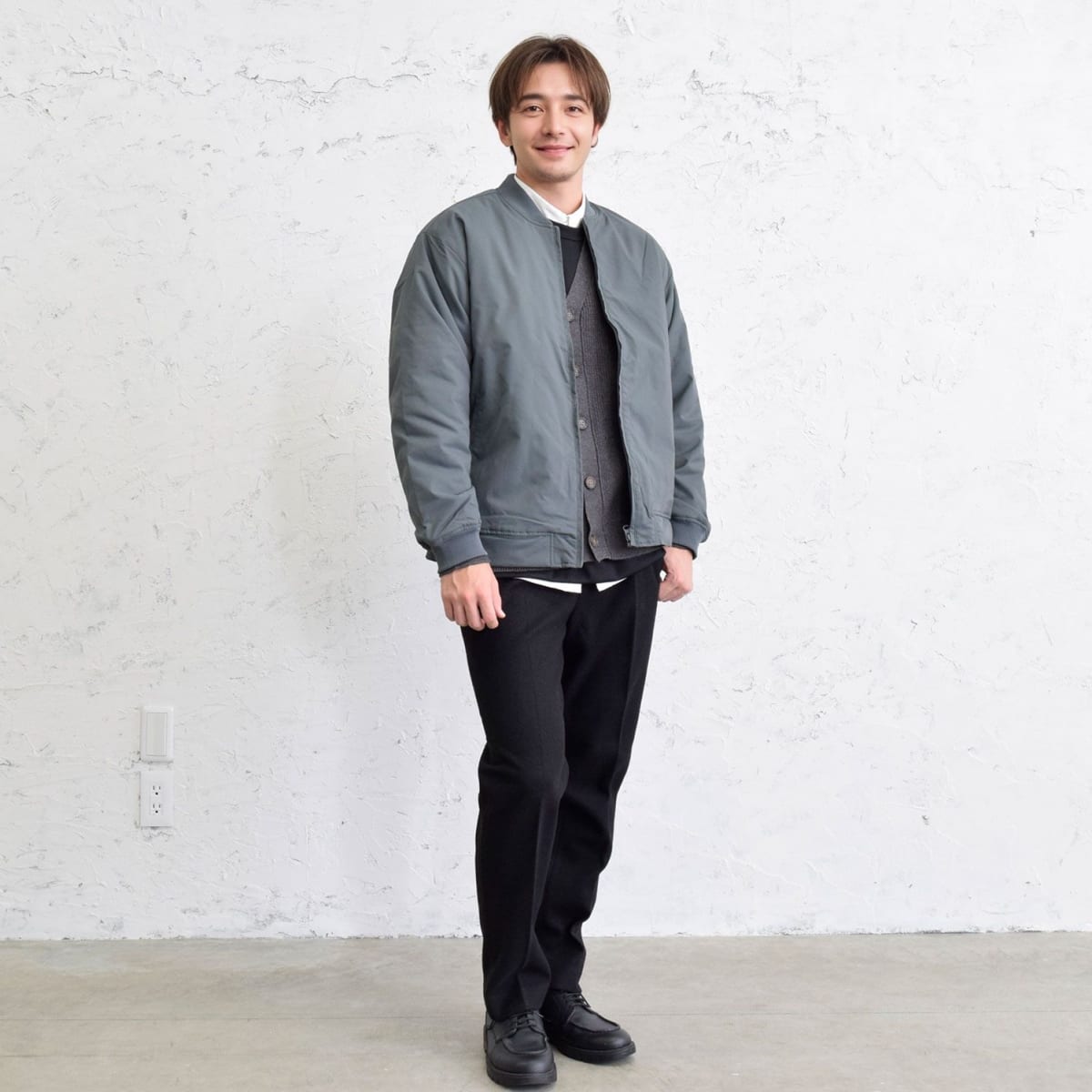 カジュアルアウターを主役にした、モノトーンコーデ。
