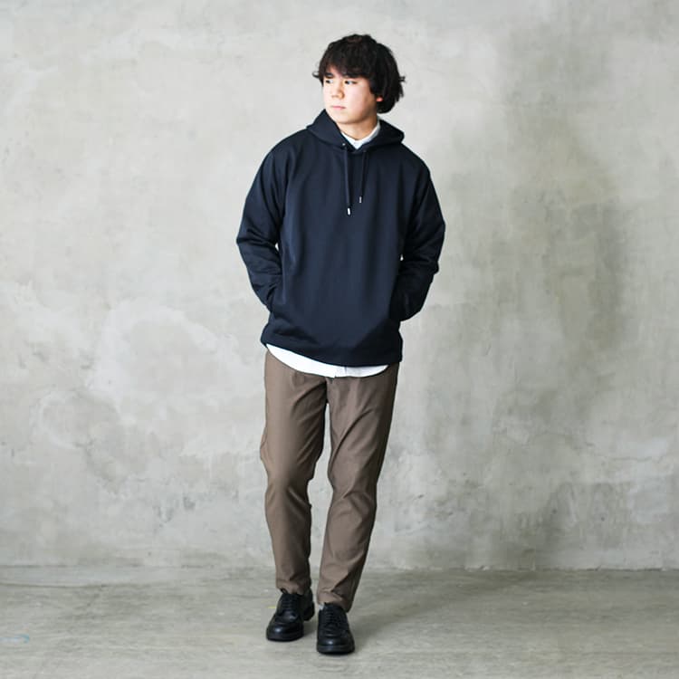 大人のパーカーコーデは「シャツ×スラックス」がマスト!