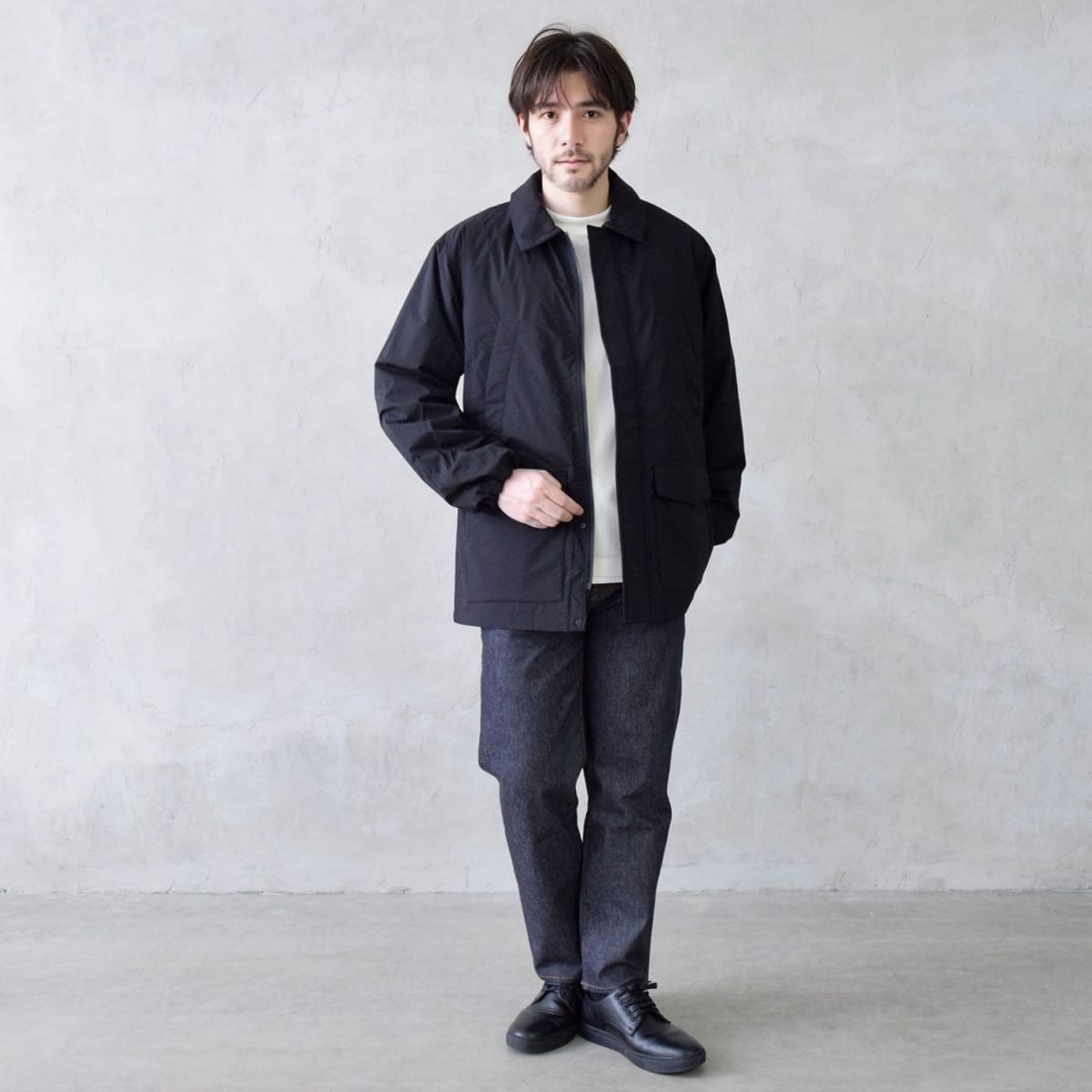 シンプルに着こなすシャツアウター。