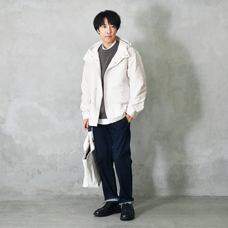 アウターを明るくして全体を明るく!カジュアルアウターの明るめスタイル!