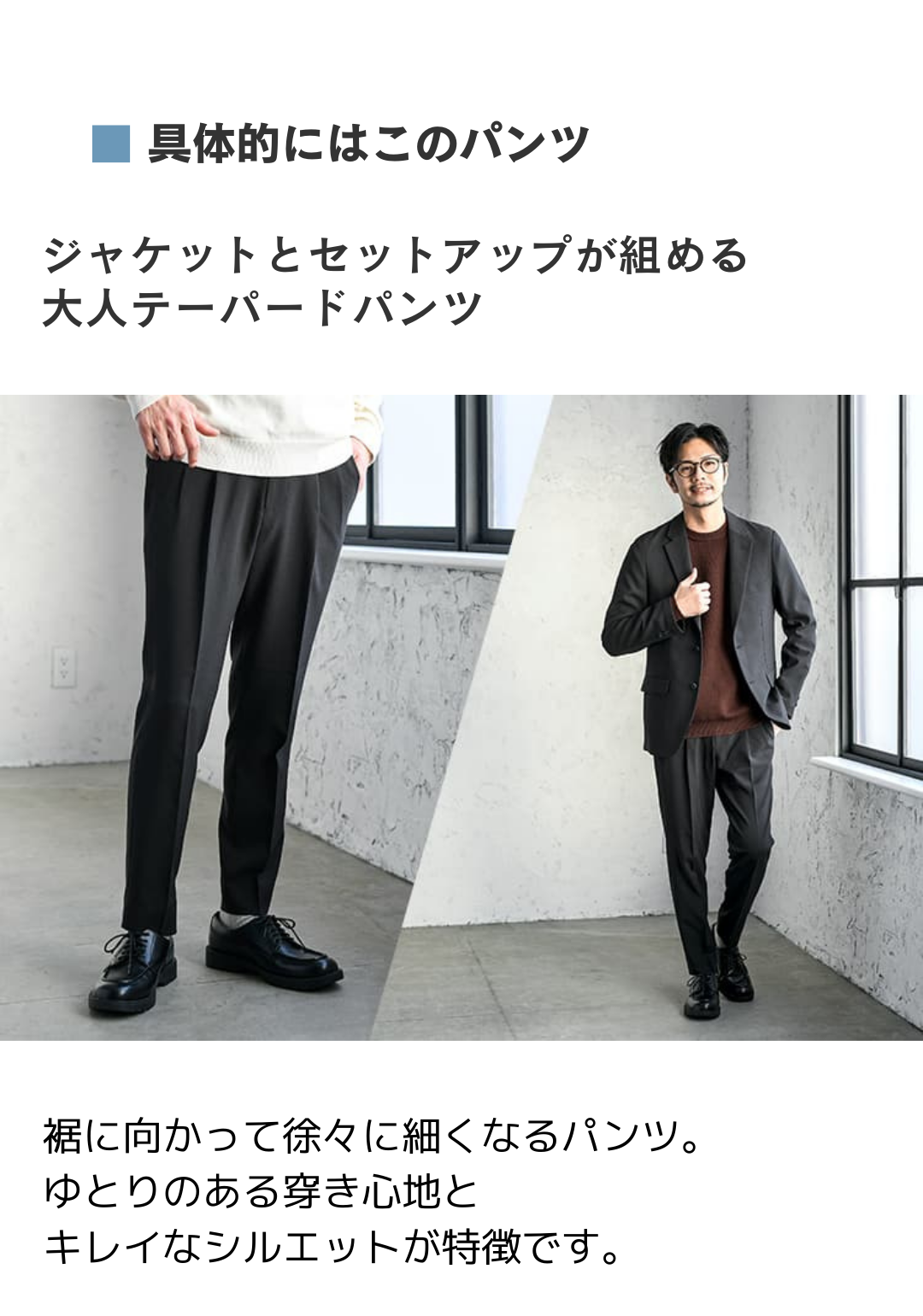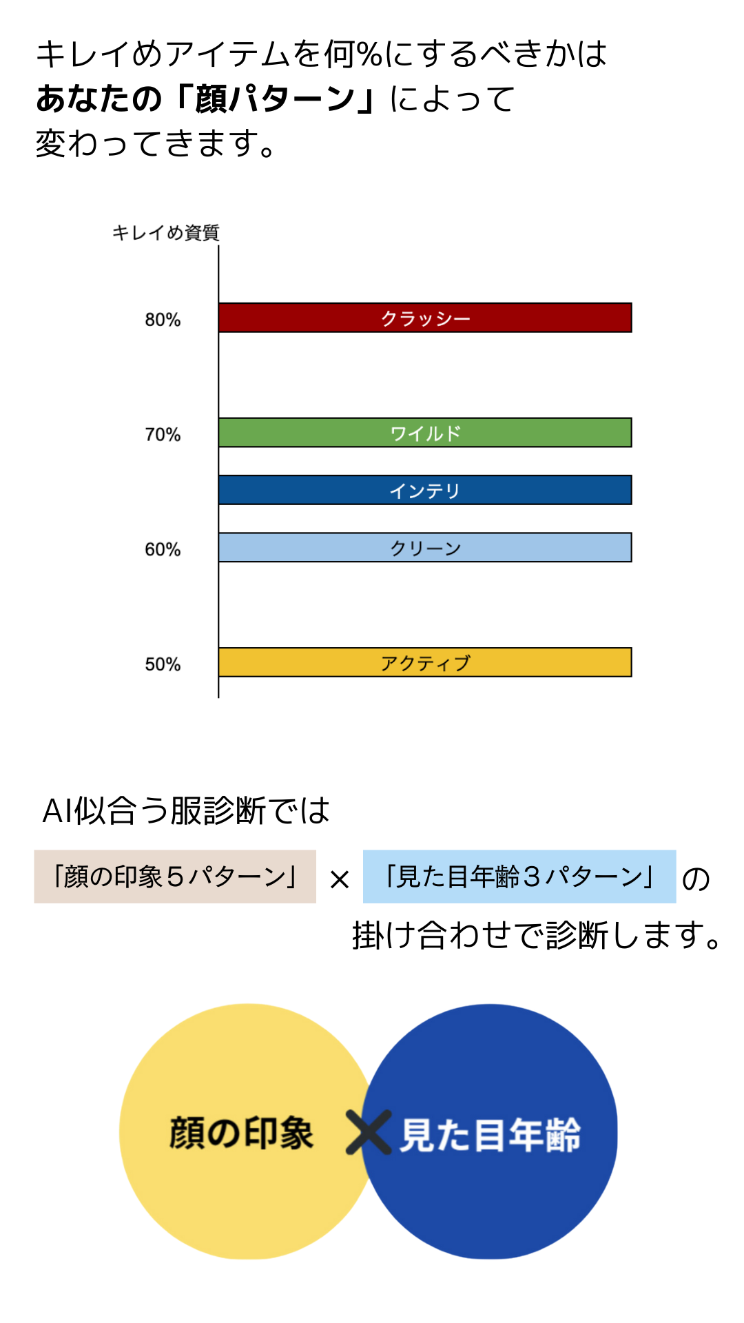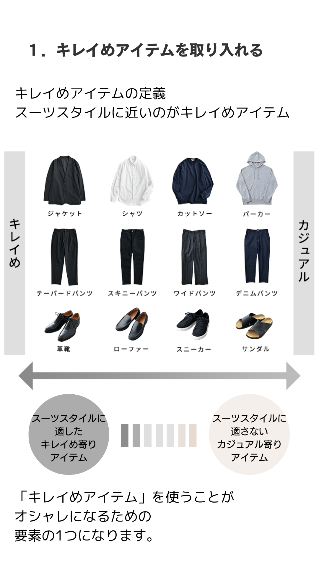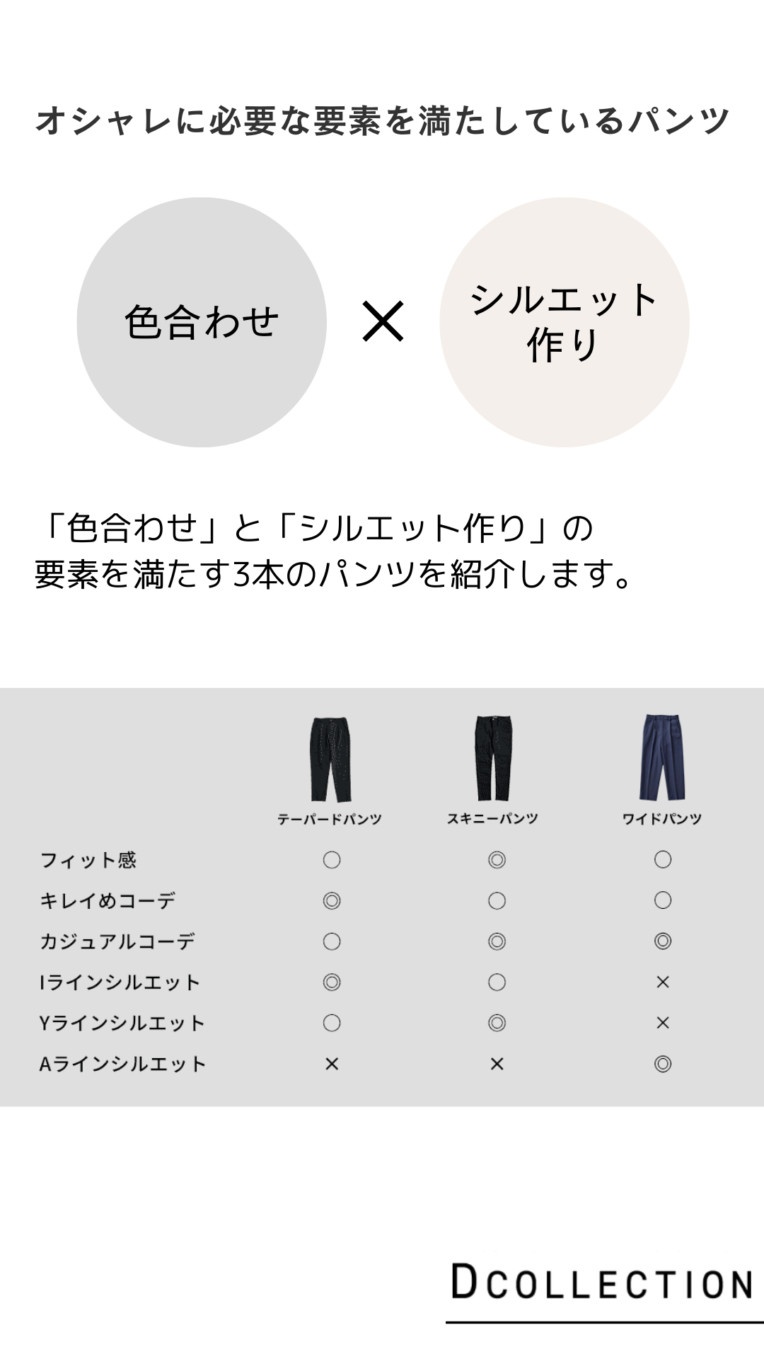 FASHION BASIS SECTION1 大人のオシャレに必要なこと 「最近、自分のファッションがしっくりこない」 「忙しくてオシャレに気を配る時間がない」 そんな風に感じたことはありませんか? もしそうだとしたら今こそ、魅力的な大人のオシャレをする絶好のタイミングです。 若い頃の服を続けると 「おじさん化」してしまう 若い頃と同じ服を着続けていると、年齢とともにそのスタイルが時代遅れに見えてしまいます。トレンドや価値観が変わっていく中で、過去の感覚に固執していると、周囲からおじさん化して見られるようになってしまいます。 大人の魅力を引き出すチャンス しかし今、あなたが「価値観」を更新し、ファッションの力で周囲からの印象を一変させるチャンスです。大人の魅力を引き出し、周りの人から「オシャレですね」「素敵ですね」と思われるようなスタイルを手に入れましょう。 私たちの実績 初めまして、私たちは会員登録33万人、アプリダウンロード40万件のファッションブランドを運営しています。(2024年8月時点) これからファッションのプロである私たちが「オシャレの原理原則」を紹介します。 大人のオシャレに必要なのは 2つの原理原則 調和は人間の本能的な美の基準です。 例えば芸術の分野では、黄金比と呼ばれる視覚的な調和が保たれ、そのデザインが美しいとされています。 社会では、礼儀作法によって人との関係や状況に社会的な調和が保たれ、その姿が美しいとされています。 2つの原理原則とは? ファッションも同じで調和のとれたコーディネートがオシャレ、魅力的とされています。 調和のとれたコーディネートに必要なのは「2つの原理原則」です。 2つの原理原則を満たせば、自動的に調和のとれたシルエットや色のバランス、TPOに合った装いが完成し美しいと感じさせます。 2つの原理原則を理解し実践するだけで自然に周囲から「オシャレだな」と思われるようになるのです。 高価な服は必要ない 「大人のオシャレな服は高いんじゃない?」と心配するかもしれませんが、高い服を買えばオシャレになれるわけではありません。全身2万円以内でも、2つの原理原則を押さえれば、あなたは間違いなく洗練された大人のオシャレを手に入れられます。 原理原則の続きは公式LINEで ここまでお読みいただき、ありがとうございます。 2つの原理原則の詳細を解説する「SECTION2以降」は、LINE公式アカウントで友だち登録された方限定で無料でお読みいただけます。 さらに、LINEではあなたにおすすめのコーディネート例や、大人が最初に買うべき洋服も知ることができます。 今すぐ友だち登録をして、オシャレをさらにレベルアップしましょう! LINEで友だち登録する