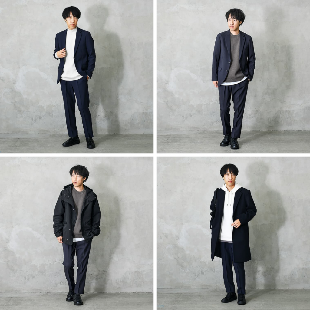 フレッシュさんに似合う大人テーパードパンツを使ったコーディネートをアプリで毎週提案しています。