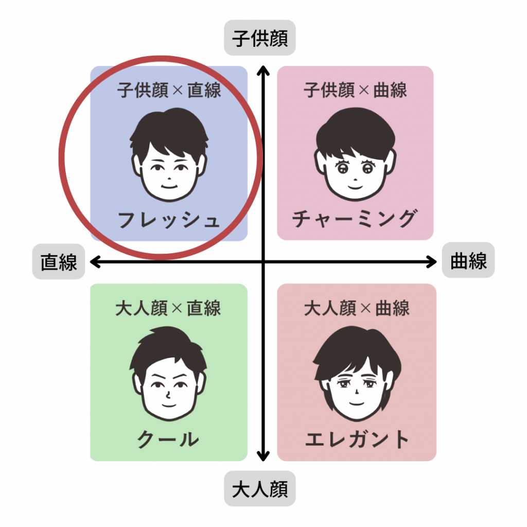 あっさりとしたお顔立ちに合わせたシンプルな着こなしが非常にお得意なのがフレッシュタイプ。